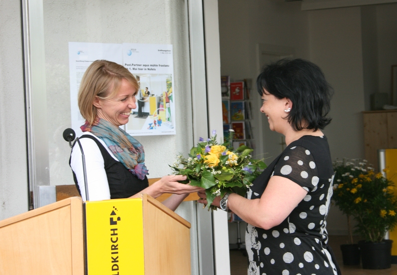Ulli Schmid überreichte Blumen an der Projektleiterin Antje Walche
