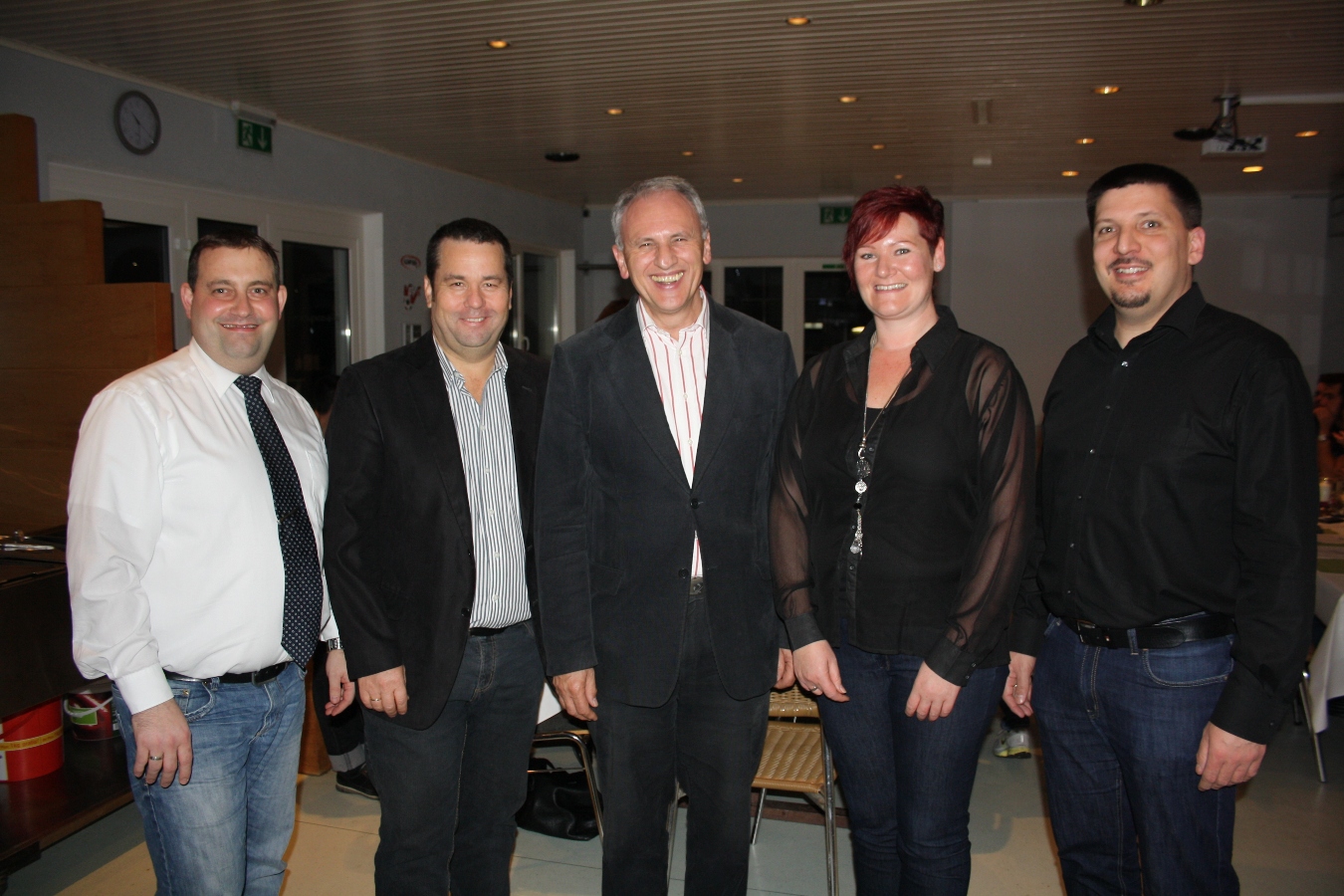 Die Vereinsverantwortlichen des Musikvereines Lochau mit Kapellmeister Matthias Walser, Vizevorstand Achim Langegg, Vorstand Wolfram Baldauf, Schriftführerin Caroline Stefani und Kassier Volker Stefani, von links.