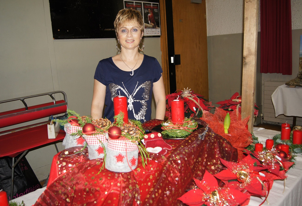 Jeannette verkaufte weihnachtliche Dekorationen am Stand von Blumen Hagen.