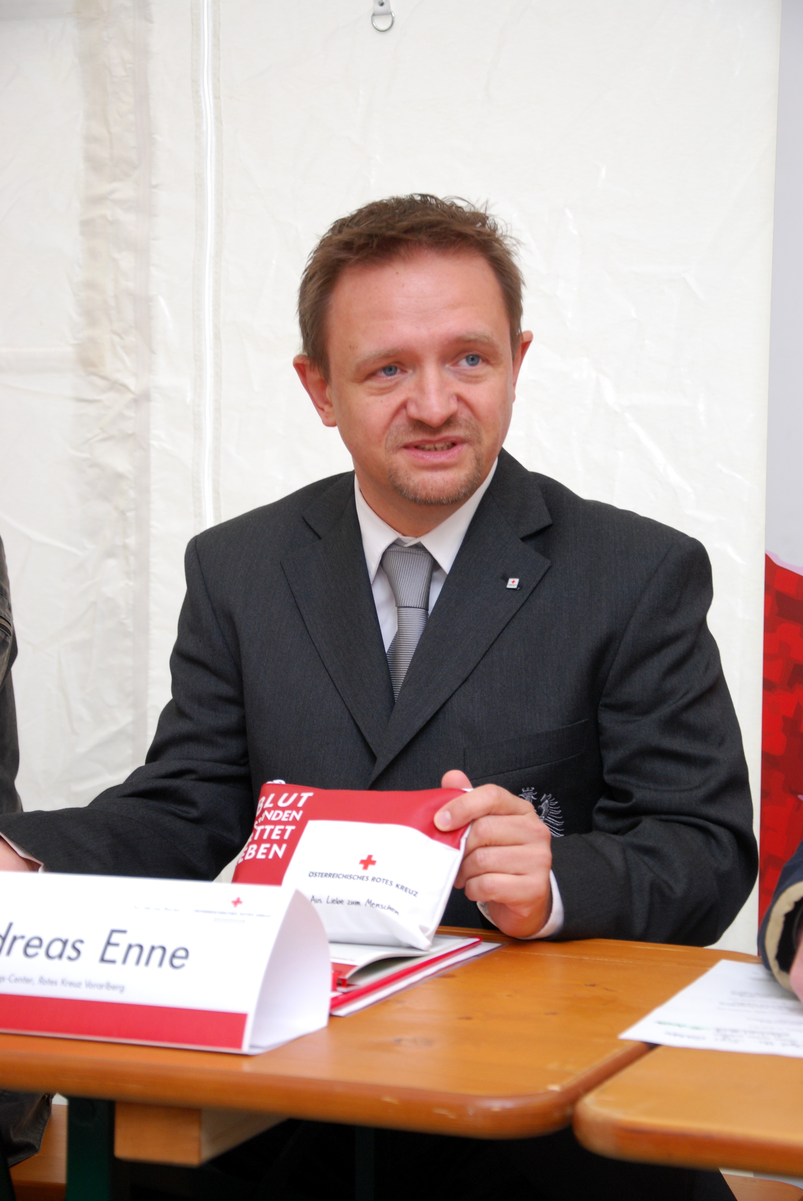 Andreas Enne, Bildungsleiter, stellt die neuen Kursinhalte inklusive witterungsbeständiger Erste Hilfe Broschüre und Notfallset vor.