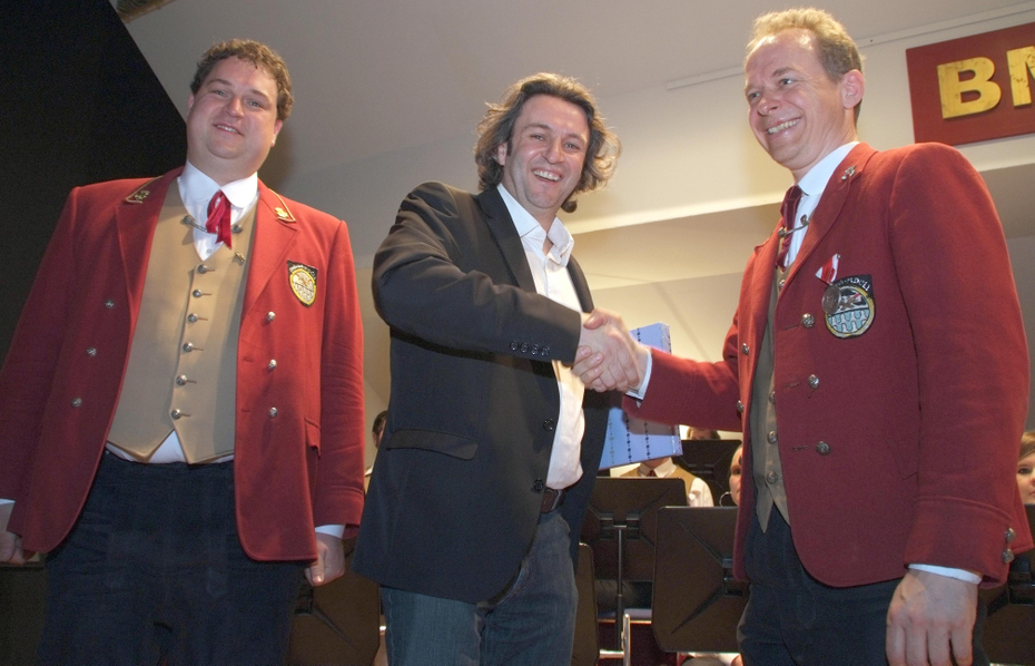 Gratulation zum Ehrenmitglied: Obmann Franz Dunkl, Bgm. Michael Tinkhauser, Thomas Geutze.