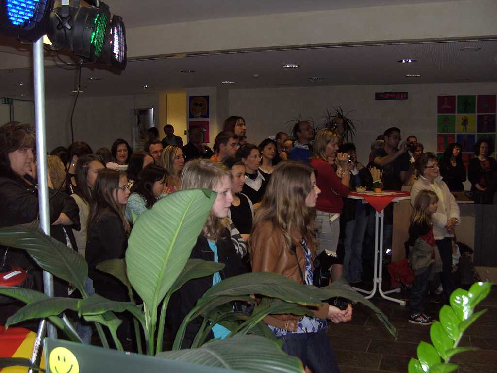 Gisinger Mittelschüler stellen in RAIBA-Bankfiliale in Gisingen ihre Werke aus.