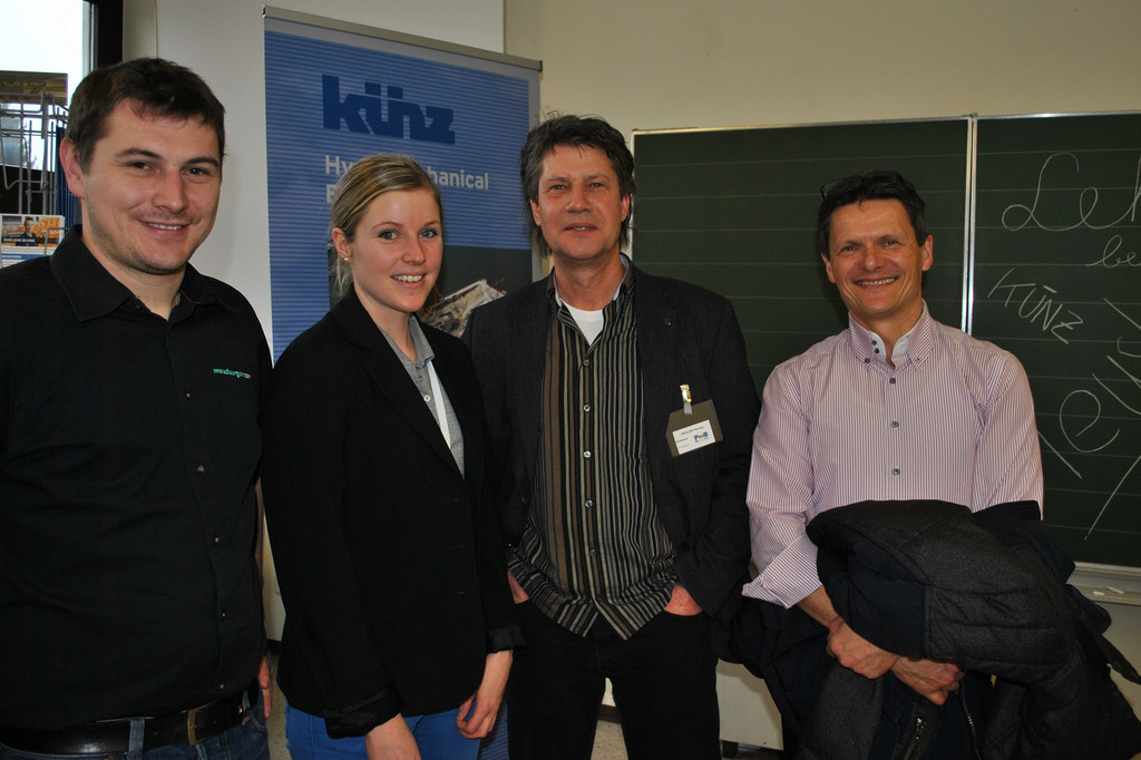 Dominik Köb (Lehrlingsausbilder Fa. Meusburger), Lisa-Marie Steurer (Fa. Künz), Herwig Orgler (Direktor PTS-Bregenz), Günter Grabher (Ausbildungsleiter Wolford)