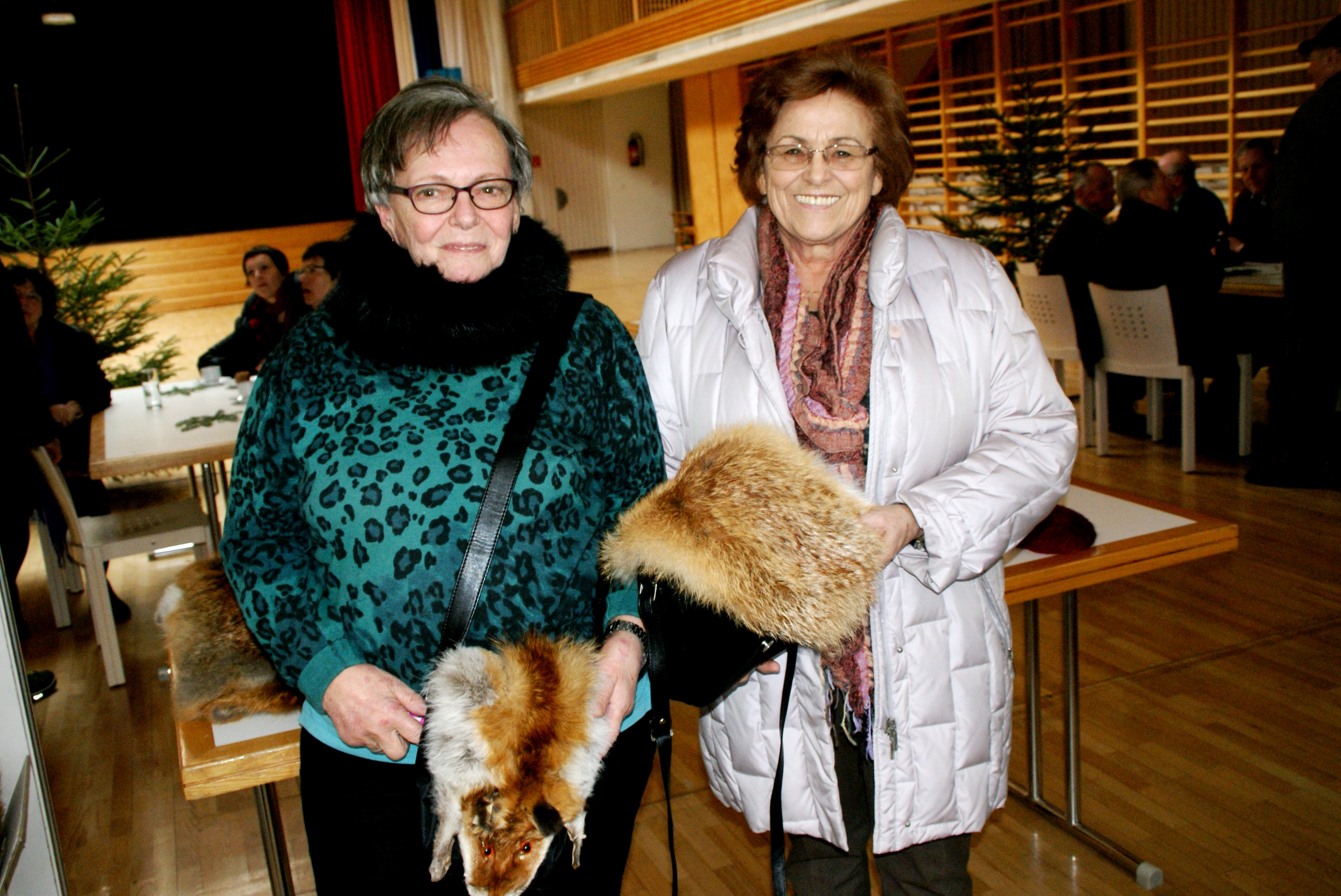 v.li. Ingelore Jäger und Elfriede Brugger mit schmucken Felltaschen