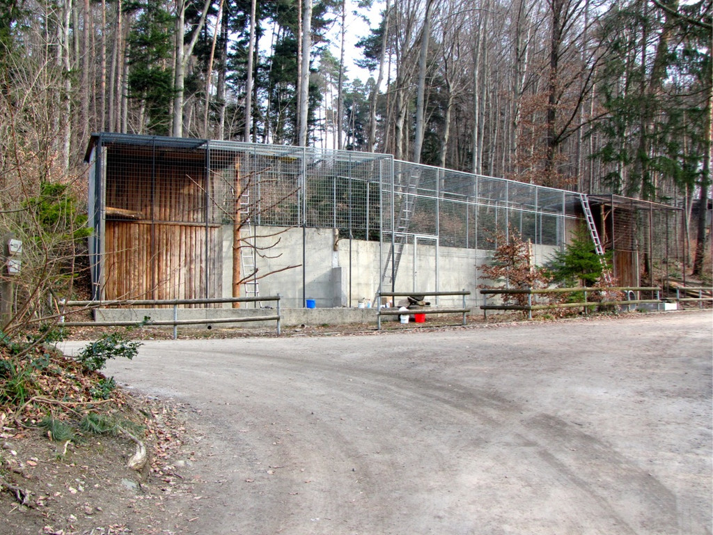 Kurz vor der Fertigstellung steht das Gehege für die Birkhühner, die in das bisherige Uhu-Gehege einziehen werden.