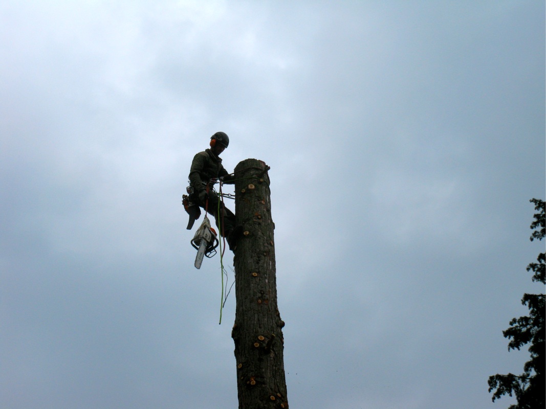 Mit der Motorsäge bewaffnet wurde der hohe Baum geköpft