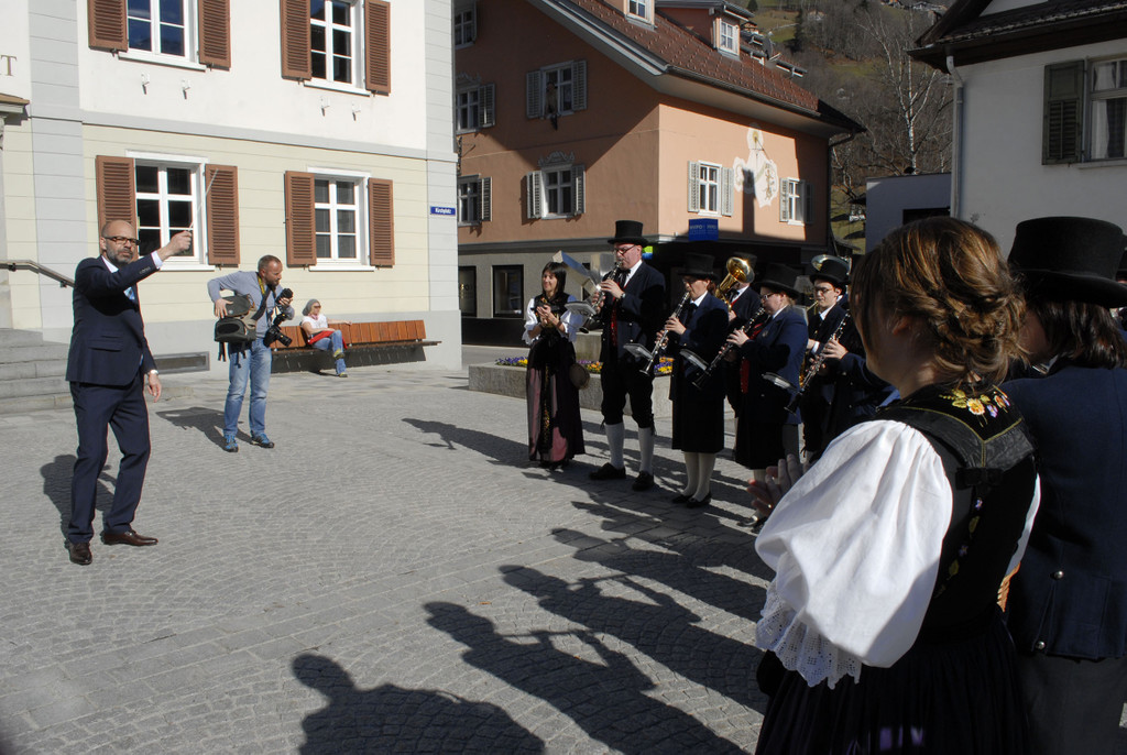 Bgm. Jürgen Kuster dirigiert die Harmoniemusik Schruns.
