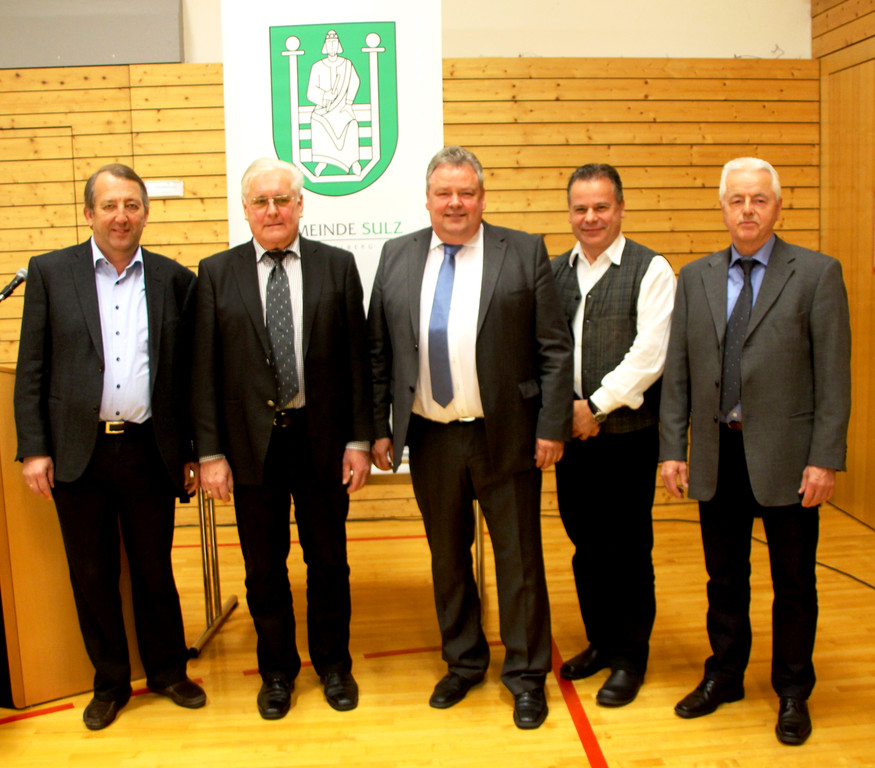 Gemeindevorstand v.l. Christoph Bawart, Kurt Baldauf, Karl Wutschitz, Norbert Schnetzer, Kurt Konzett