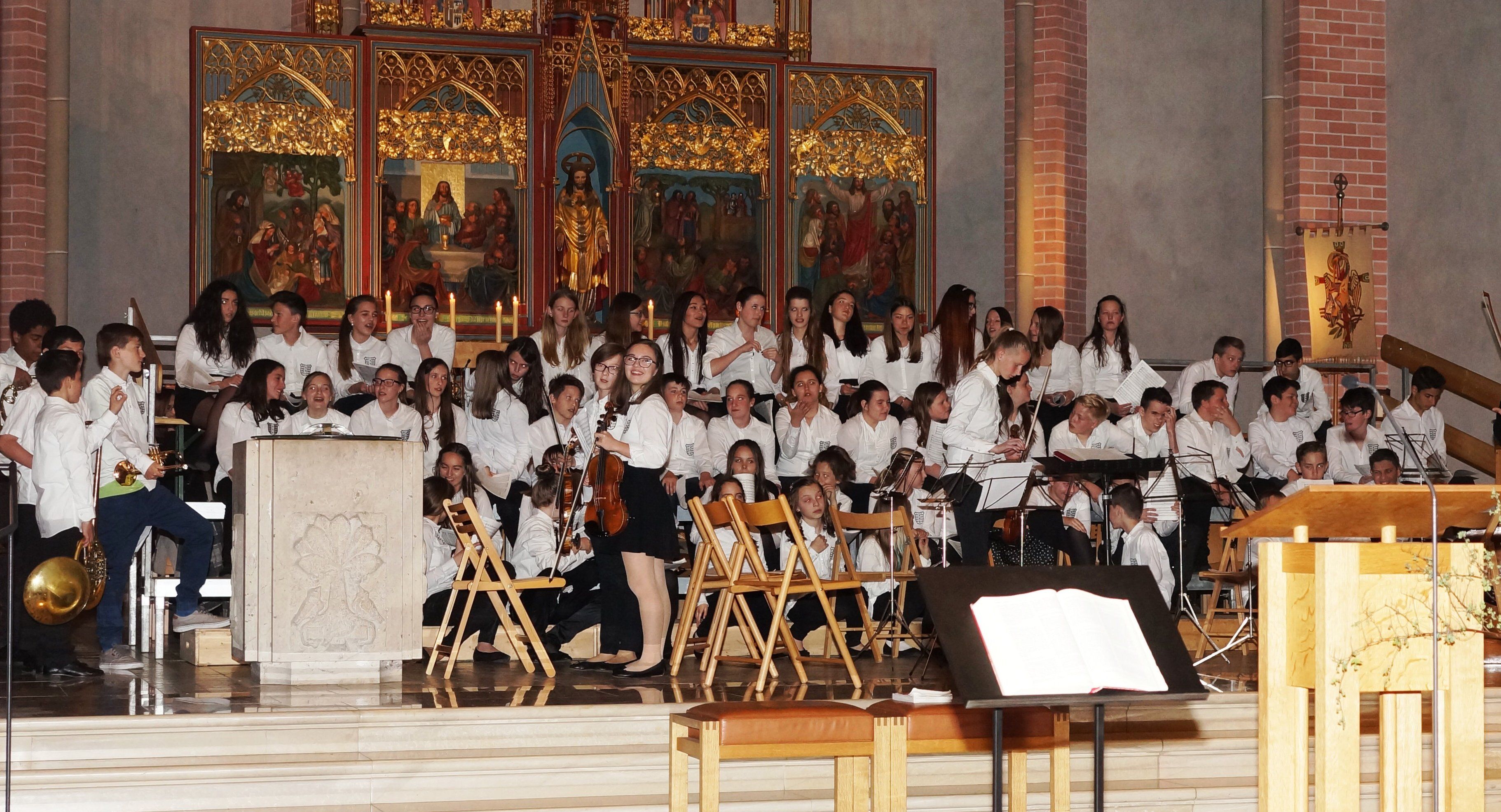 MusikmittelschüerInnen bei ihrem Auftritt in der Herz-Jesu Kirche