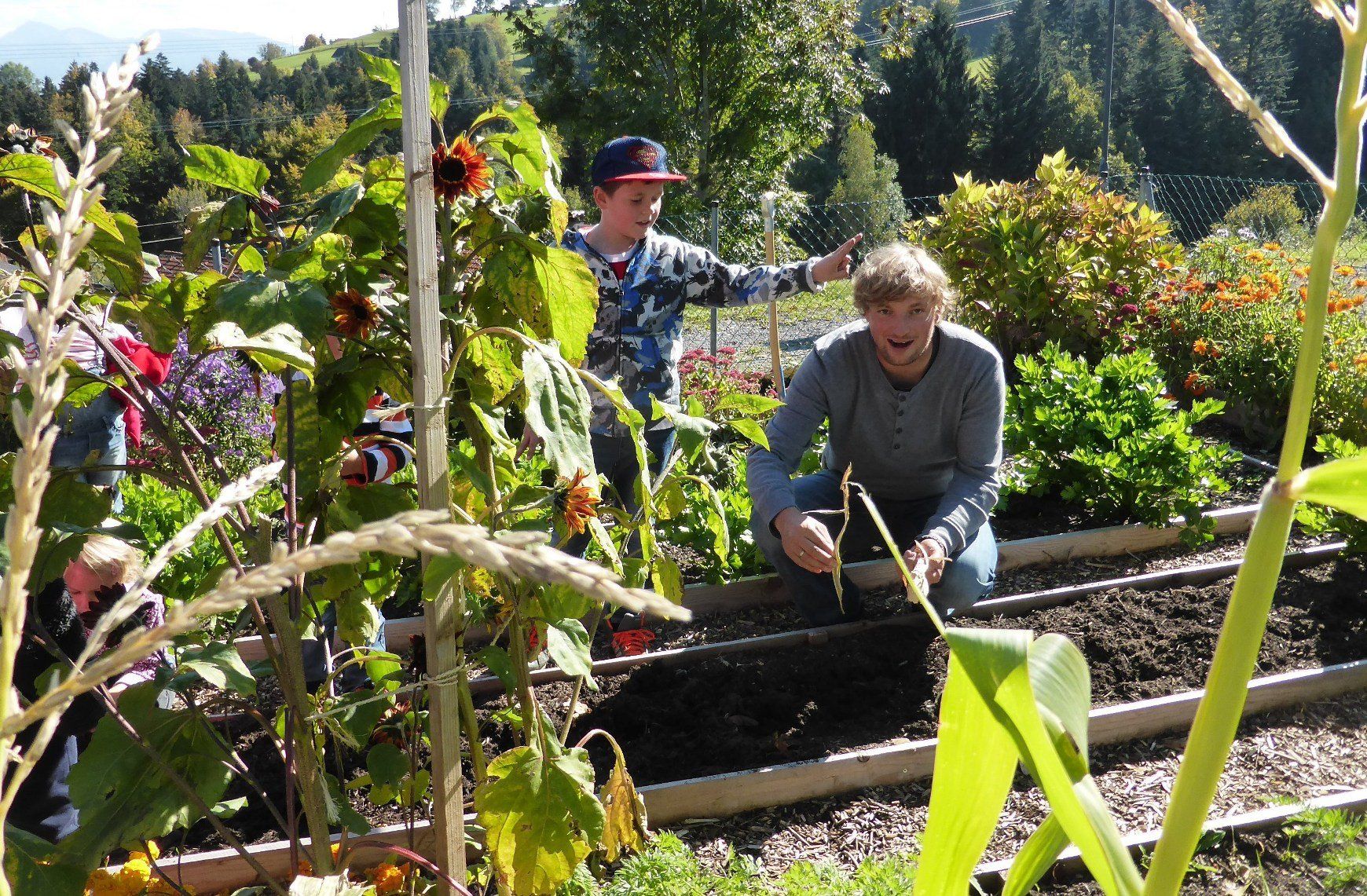 "Jung und Alt" im Bucher Pfarrgarten.