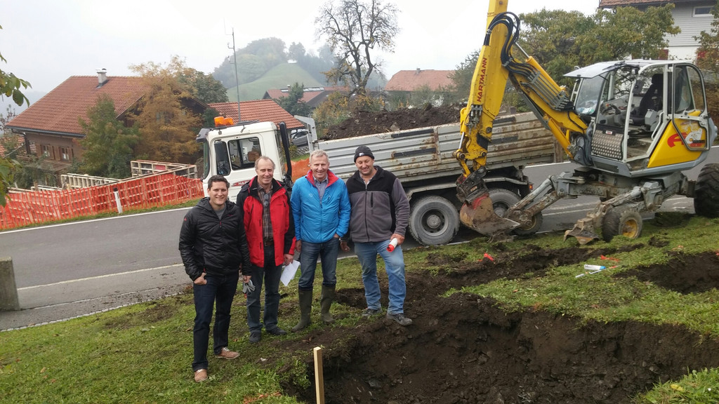 v.l. BGM Steve Mayr, HTL-Lehrer Robert Nachbaur, Ex-Vize Bgm. Pius Nachbaur; Hermann Hartmann Erdbewegungen