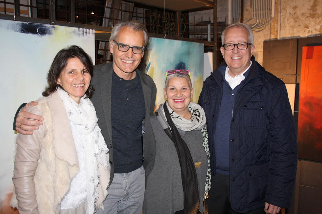 Heidi und Thomas Vogler (Galerie Papillon), Künstlerin Agi Huber und Bürgermeister Michael Simma.