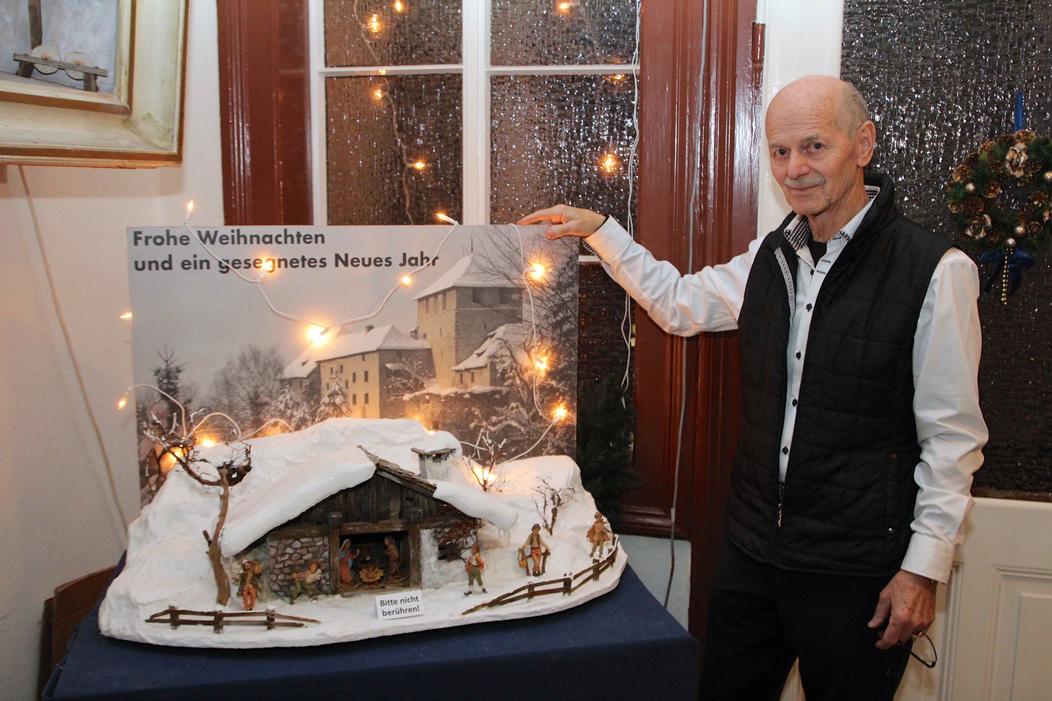 Krippe mit Schattenburg-Hintergrund.