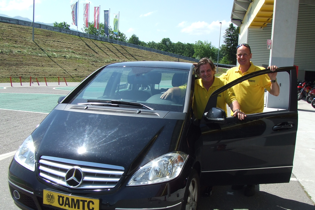 Die ÖAMTC-Instruktoren mit dem Testauto Mercedes-Benz A-Klasse.