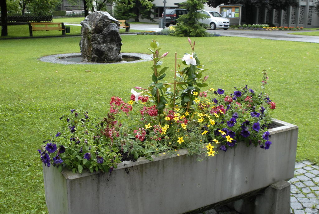 Blumenschmuck auf dem Gelände des Gemeindeamtes von Vandans am 18. Juni 2010. (Foto: Gerhard Scopoli)