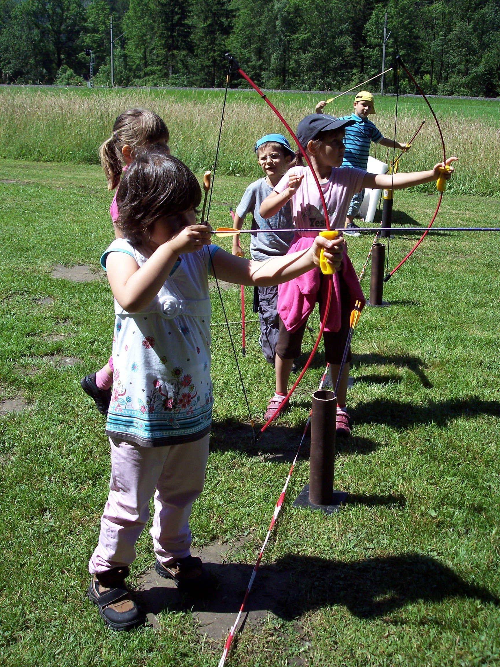 Bärle-Kindergartengruppe beim Bogenschiessen