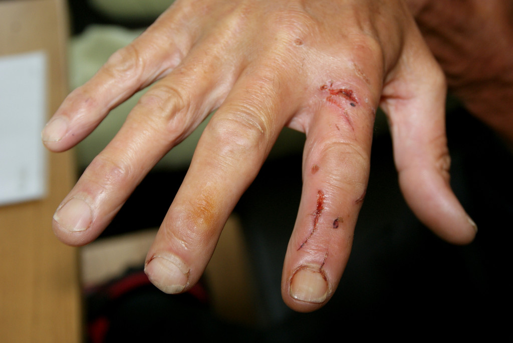 Glück im Unglück, der Hund hat "nur" in die Hand gebissen.