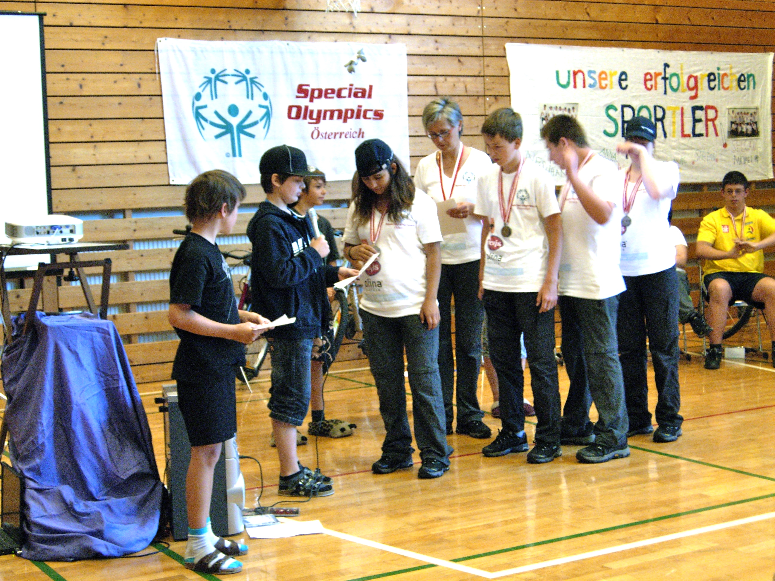 Die Sportler werden interviewt.