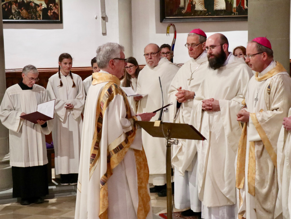 Dompfarrer Rudl Bischof übergibt das Dekret zum Priester.
