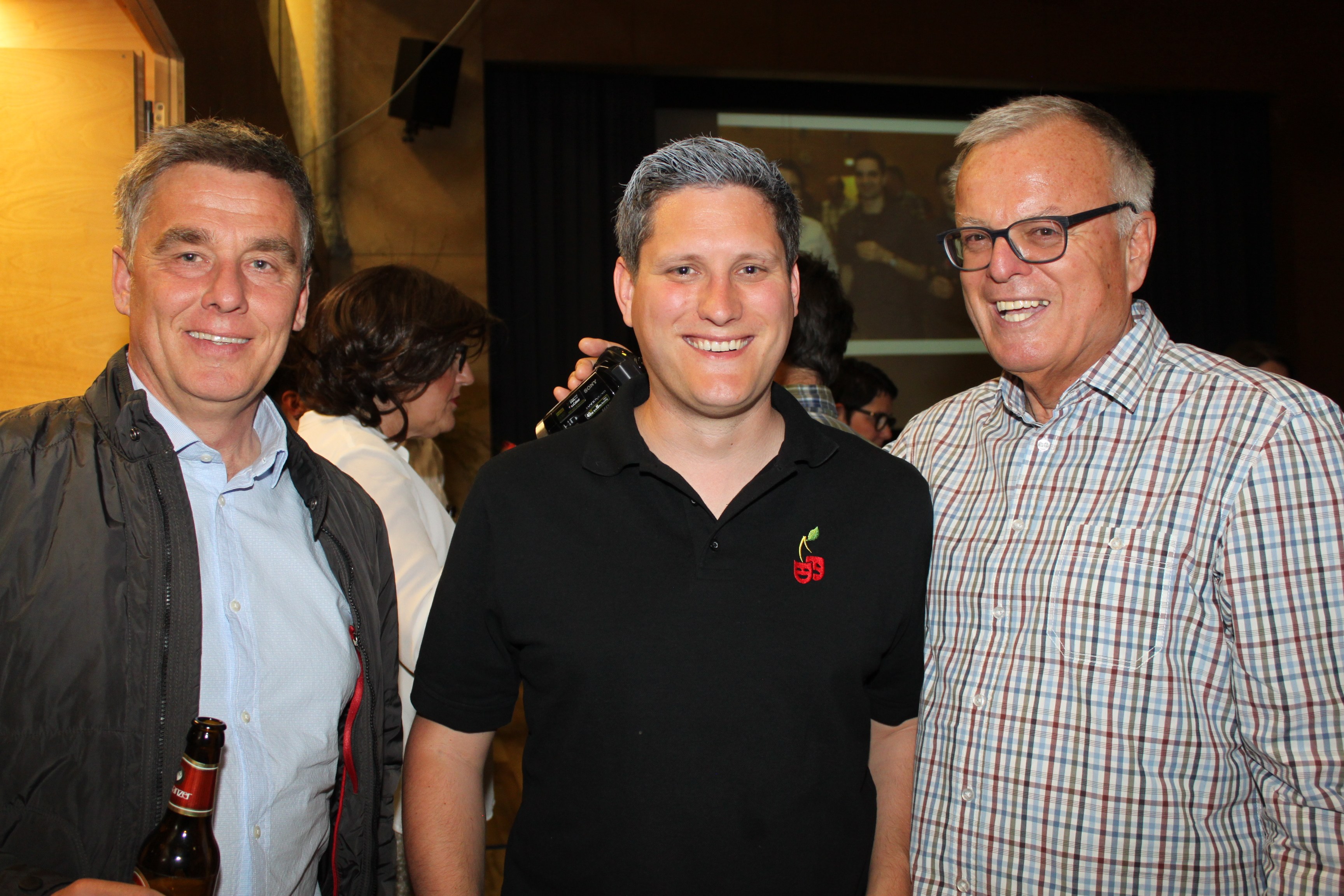 Rene, Theaterspieler und Bgm. Steve Mayr (im Stück Volksmusikstar Hardy Hammer), KR Fritz Amann