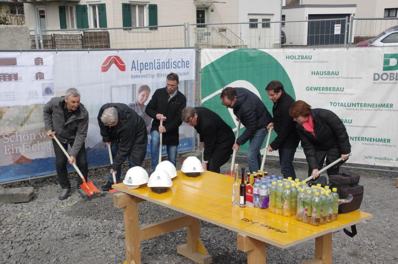 Spatenstich mit Vertretern der Gemeinde und der Alpenländischen