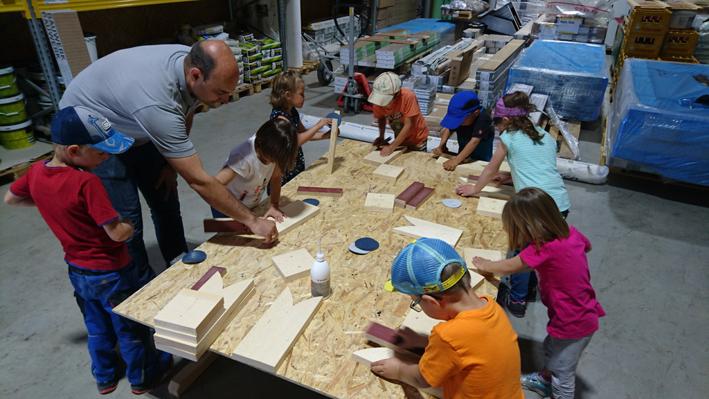 Kindergarten Übersaxen zu Besuch bei der Firma Weiler Möbel