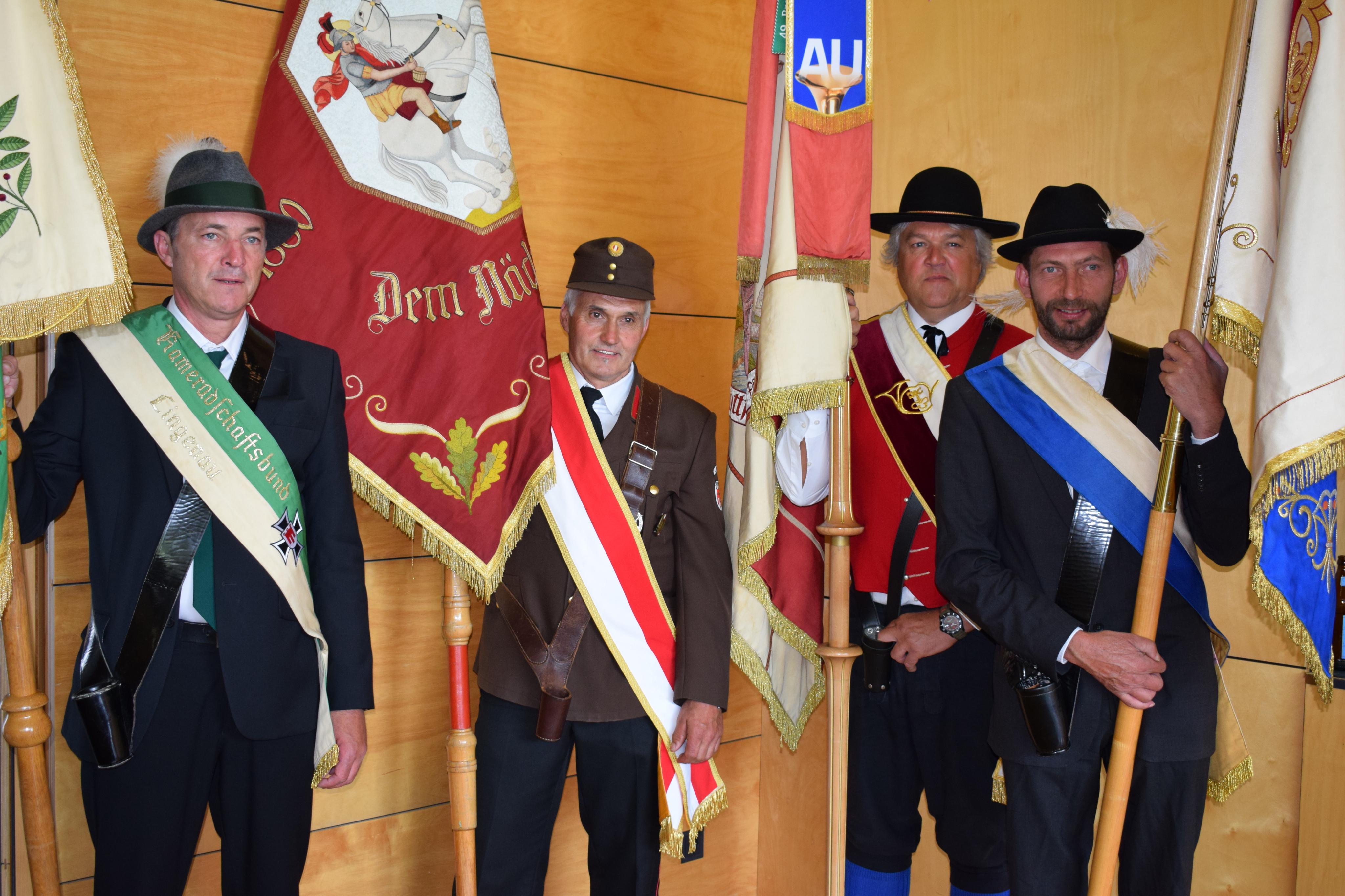 Fahnenabordnung von Kameradschaftsbund, Feuerwehr, Musikverein und Zunft.