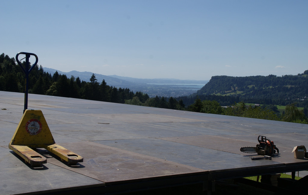 Stück für Stück entsteht mit Blick auf den Bodensee der Terrassenbereich beim Bucher Festzelt.