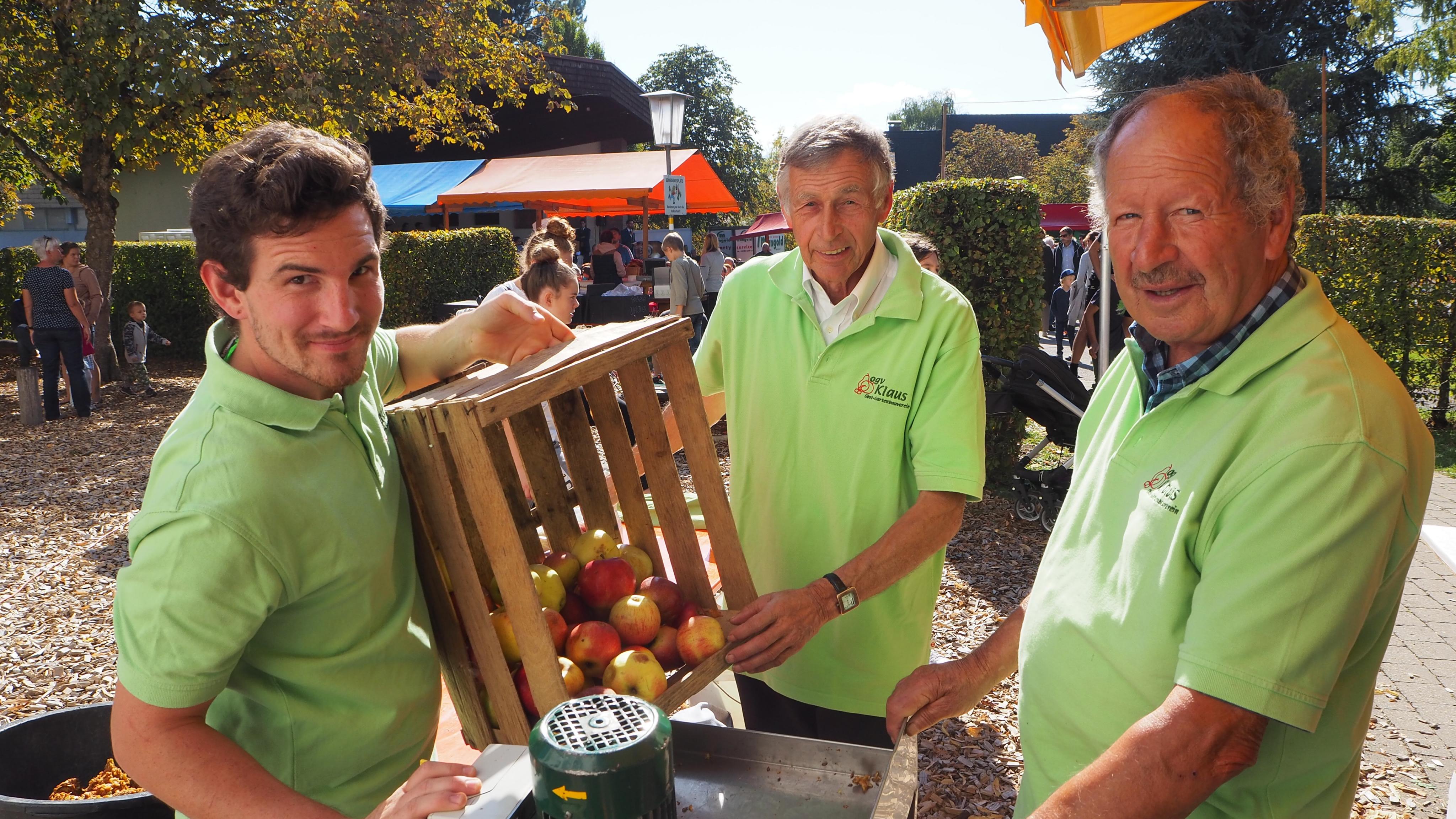 Tobias, Erich und Walter vom OGV pressen frischen Süssmost
