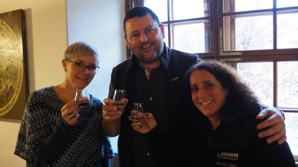 Angelika und Monika gönnen sich einen guten Schluck mit Bruno Broger