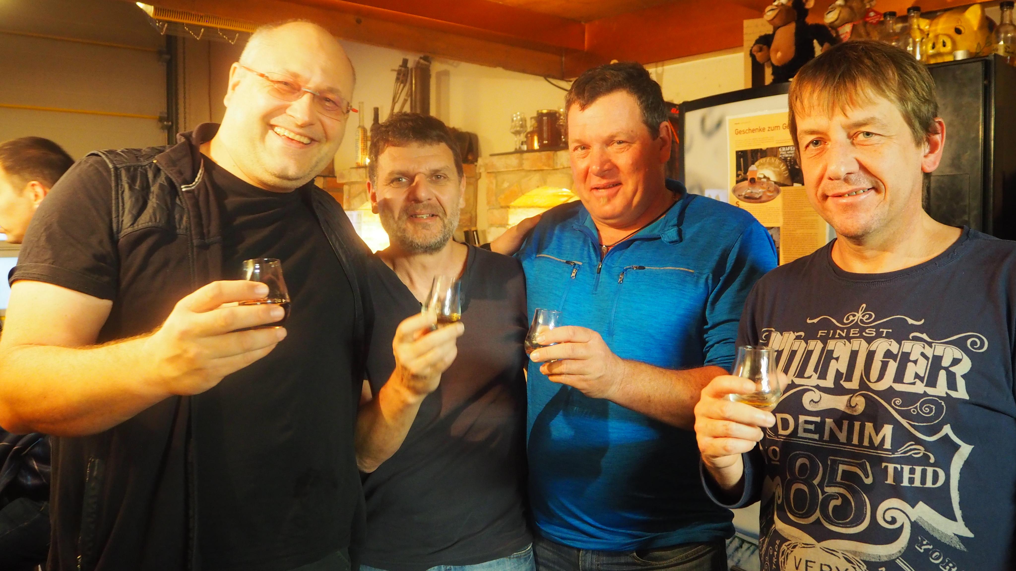 Herrenrunde mit feinen Tropfen: Christoph, Edi, Thomas, Christian