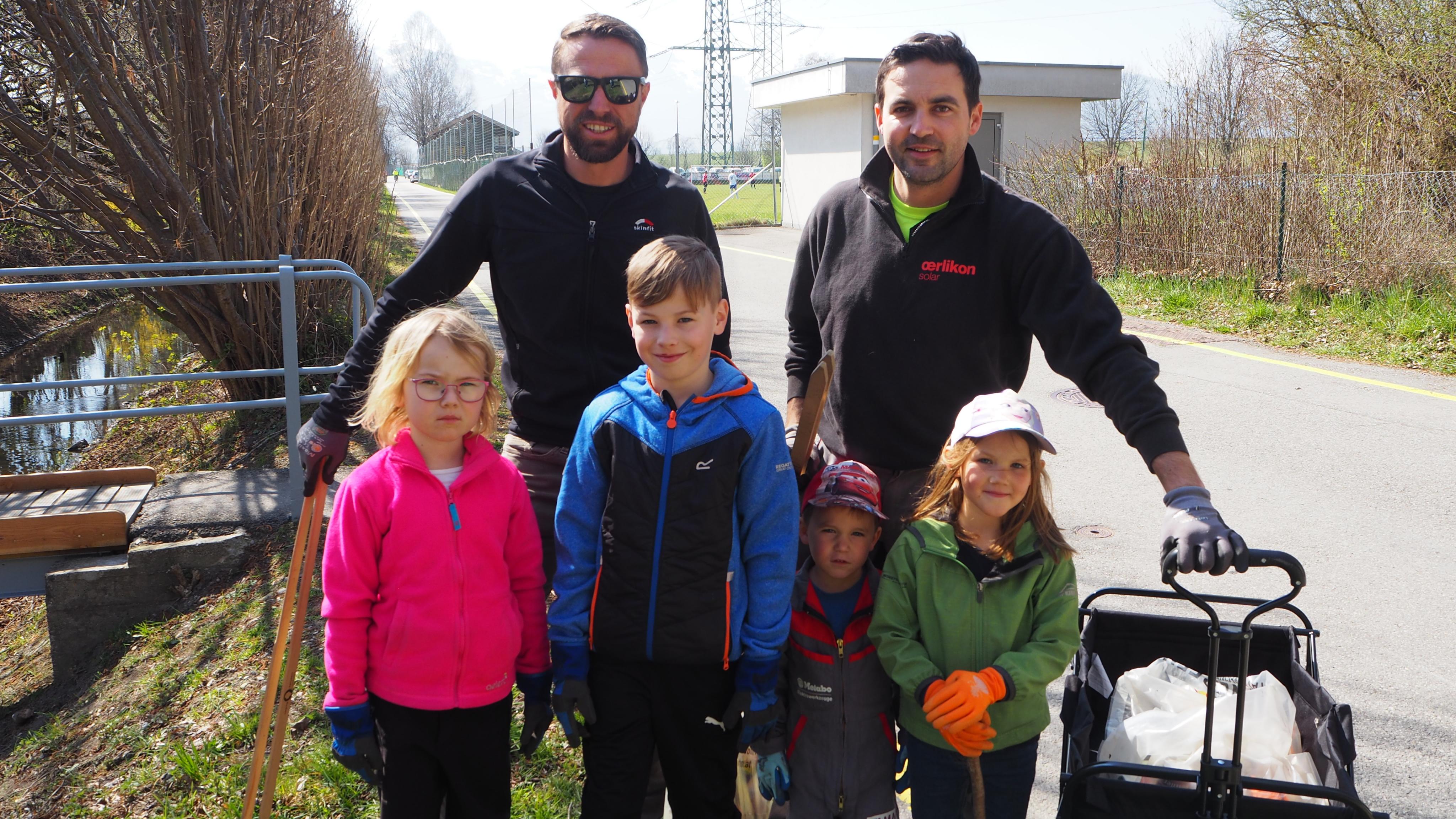 Die Papas Nobi und Andi mit dem Nachwuchs: Emma, David, Liam und Laura