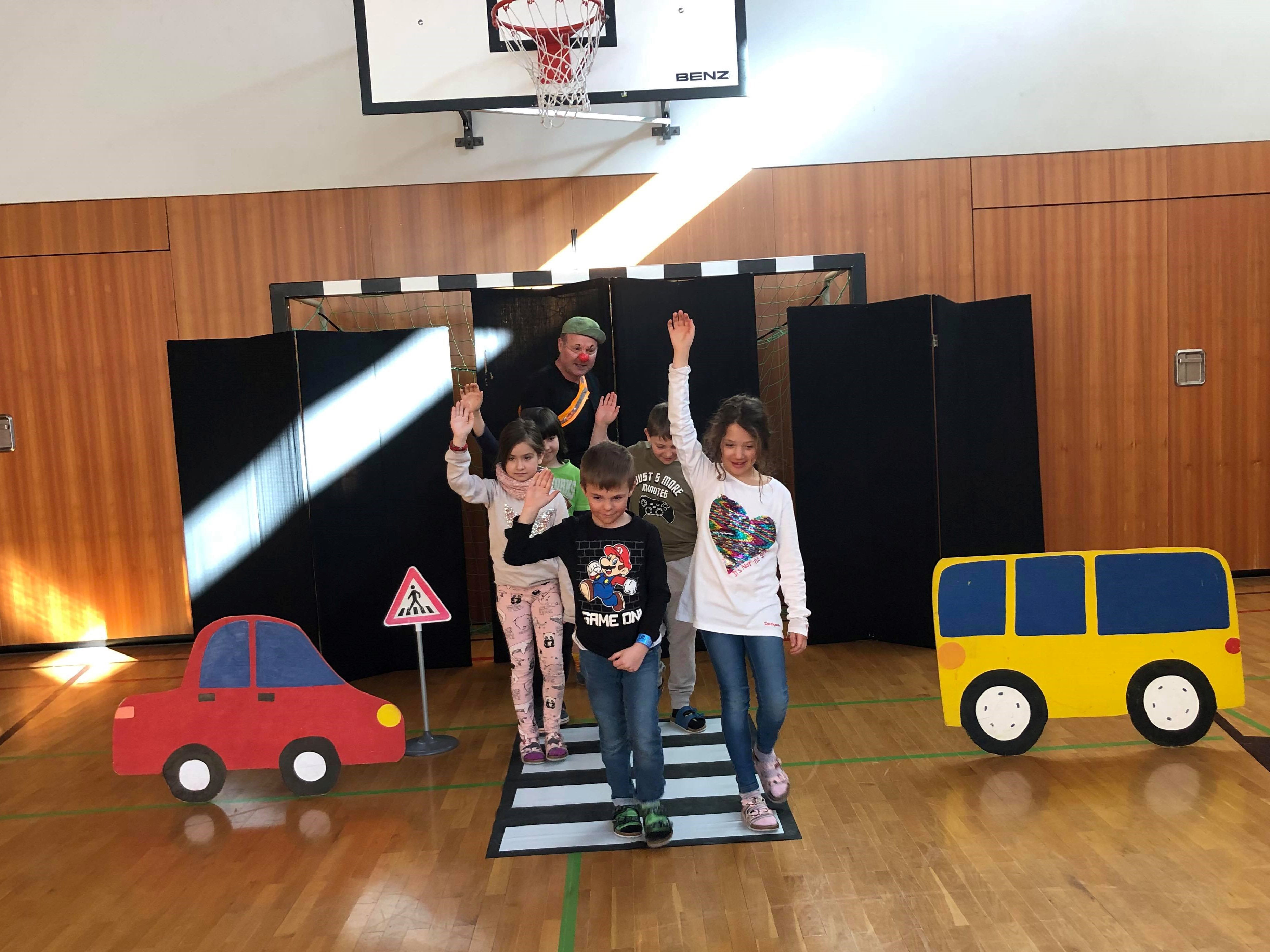 Verkehrserziehung mit Clown Schlotterhos