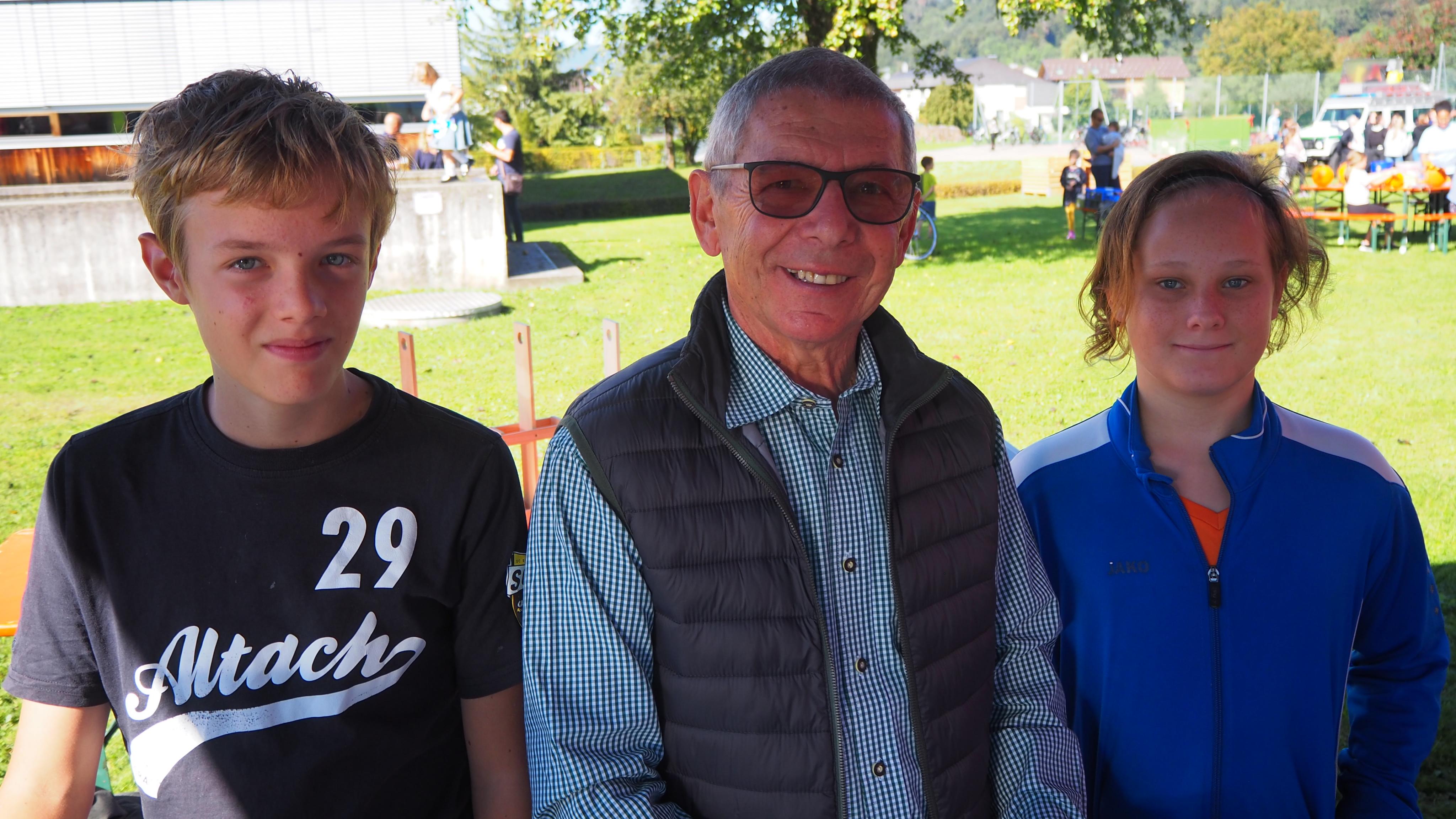 Vinzenz und Felix halfen Opa Jakob am Stand