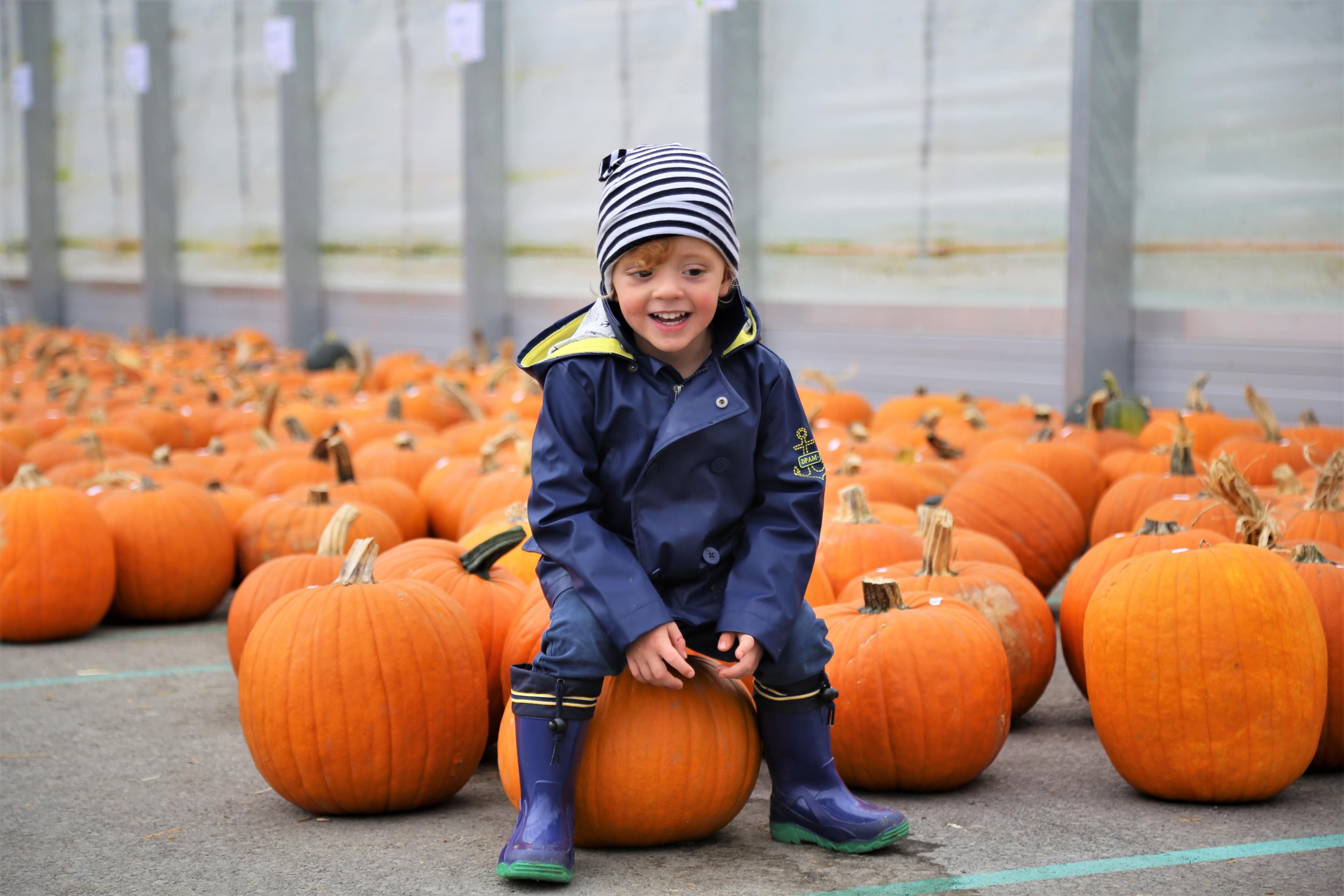 Linus tobte sich bei den Kurbissen aus