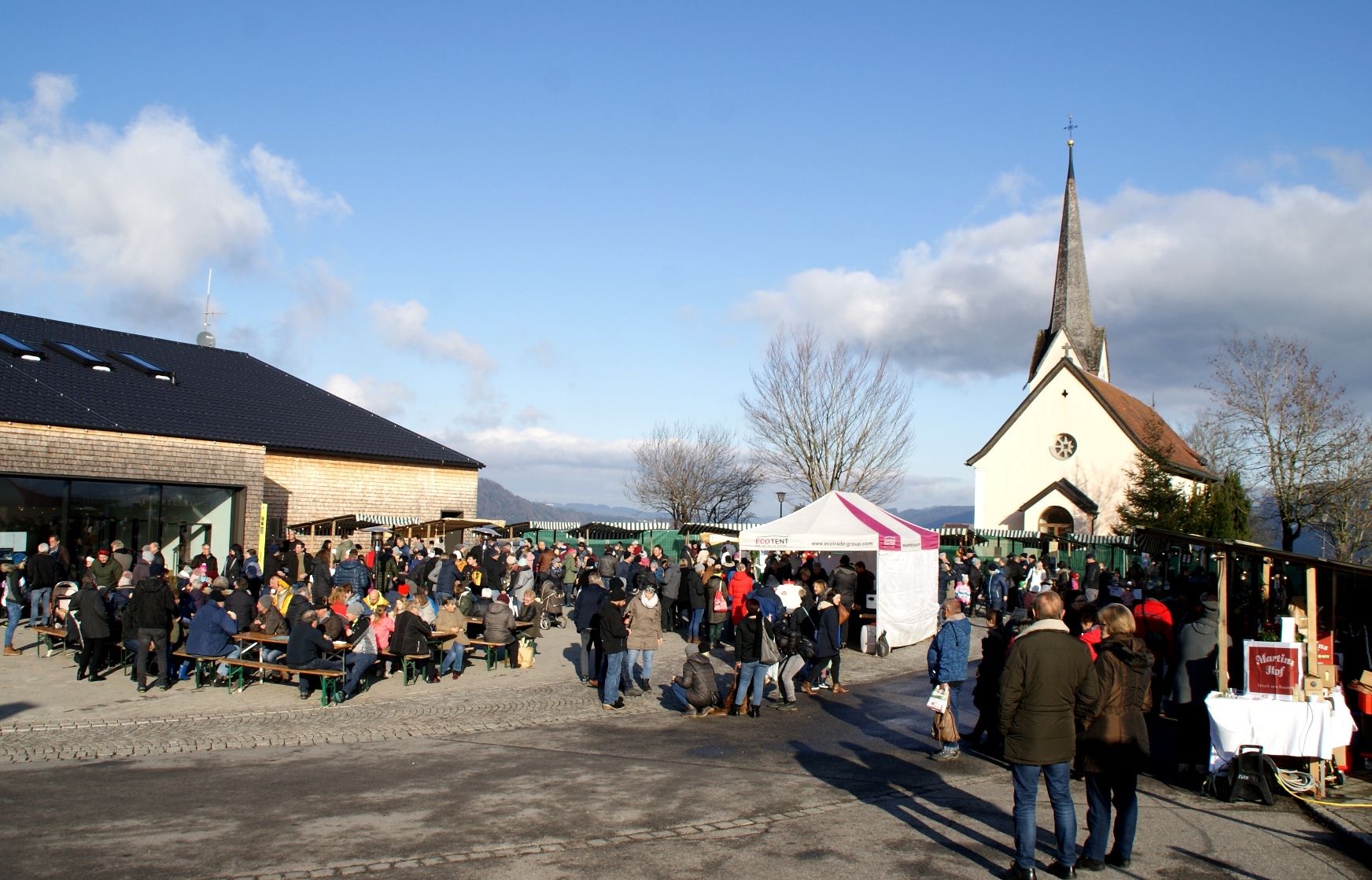 Dorfplatz als Marktmeile: Seit über 20 Jahren bildet der Bucher Klosamarkt einen geselligen Treffpunkt am ersten Adventwochenende.