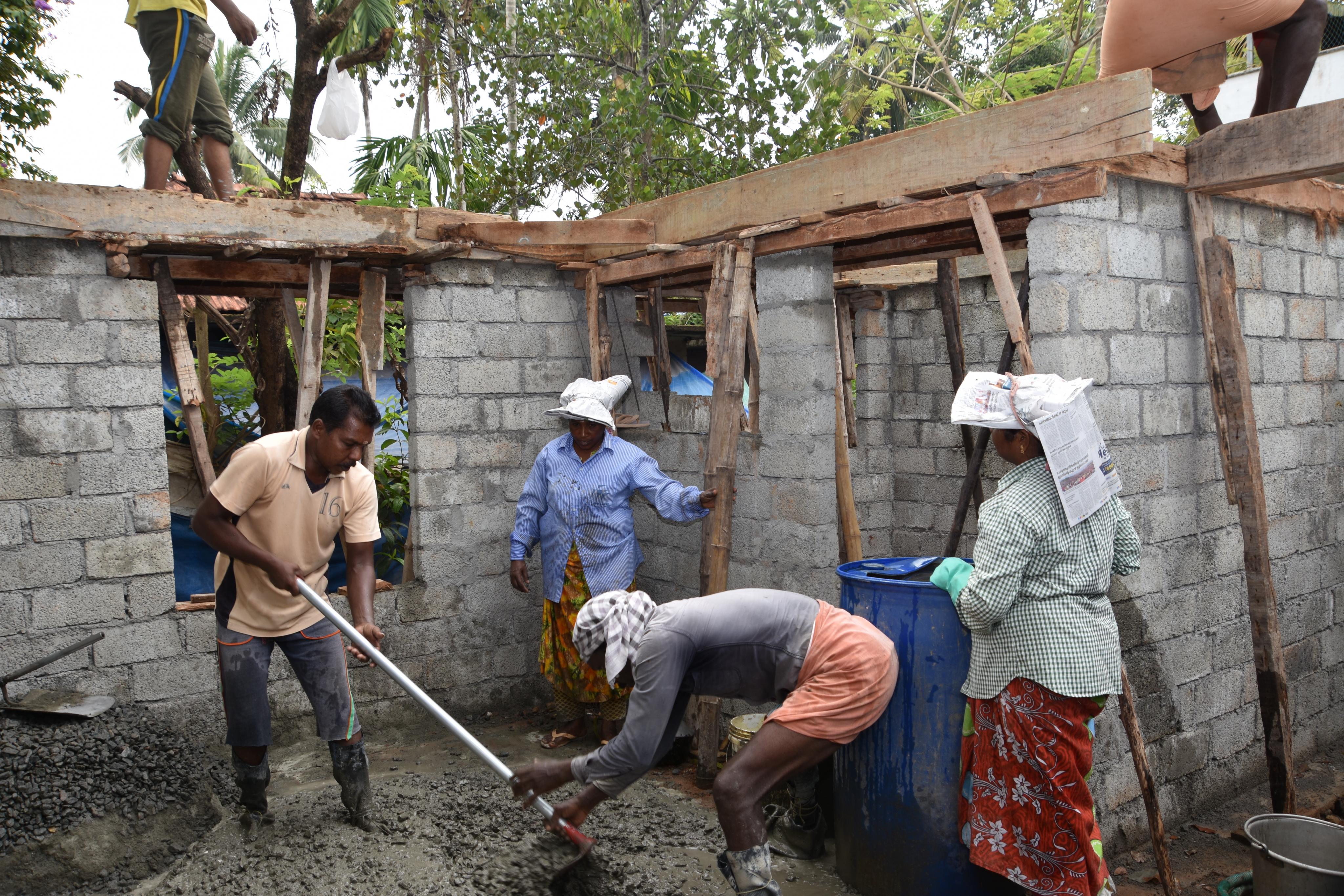 Familien helfen beim Häuserbau mit.