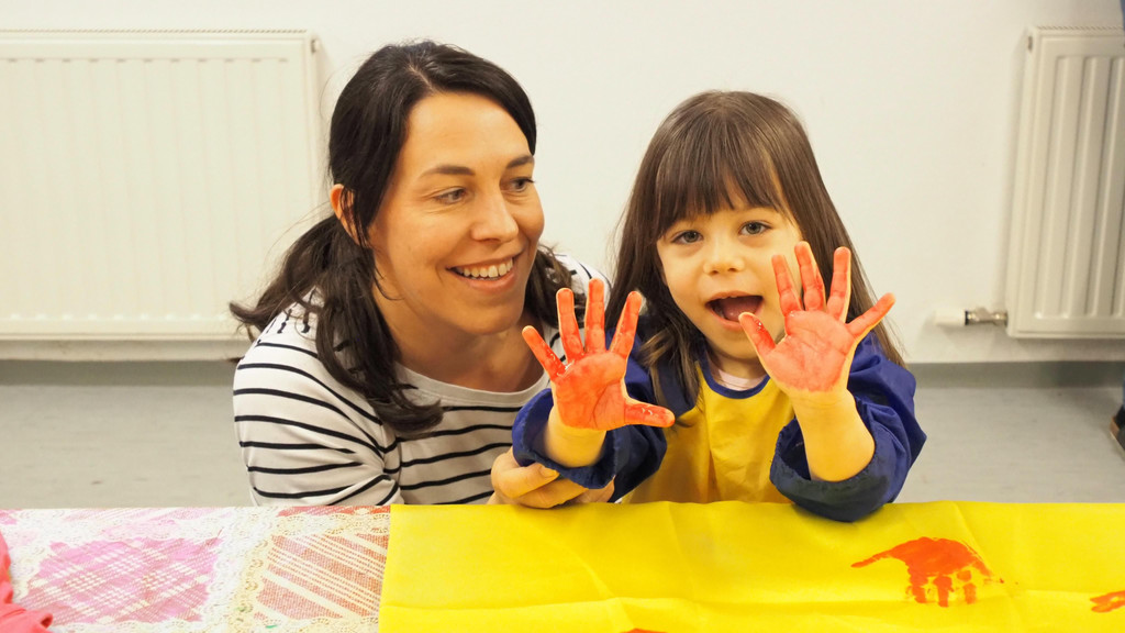 Mama Martina mit der kreativ bunten Tochter Aurelia