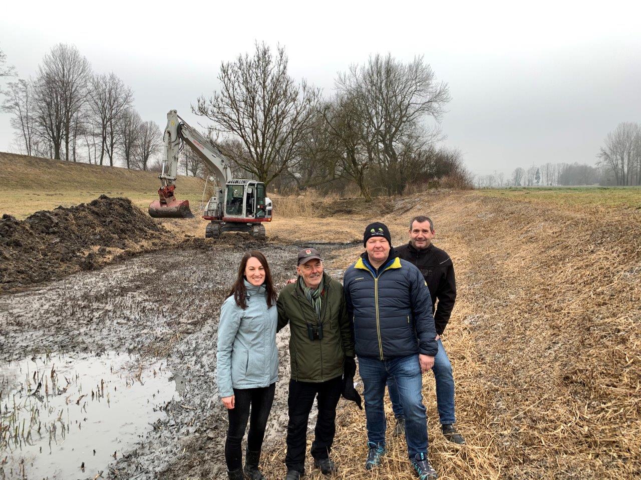 Gebietsbetreuer Petra Häfele und Alwin Schönenberger, Bauhofmitarbeiter Kurt Spechtenhauser und Kurt Rauch begutachten die Umsetzung vor Ort.