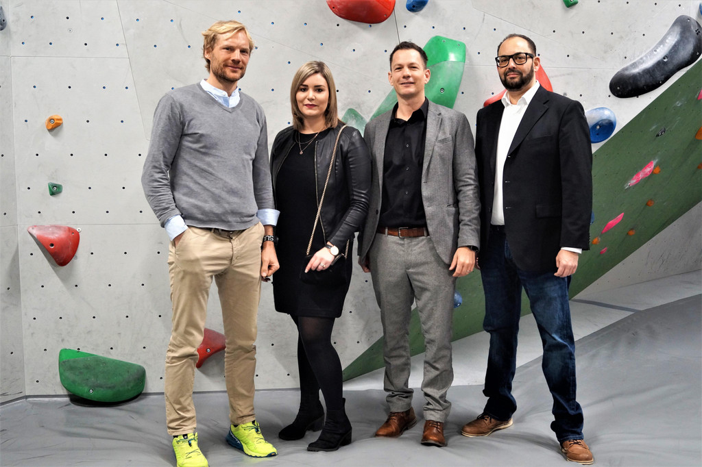 Extrembergsteigere Benedikt Böhm, Christina Egger, GF Stadtmarketing Robert S. Salant und Prokurist Niklas Keller nt