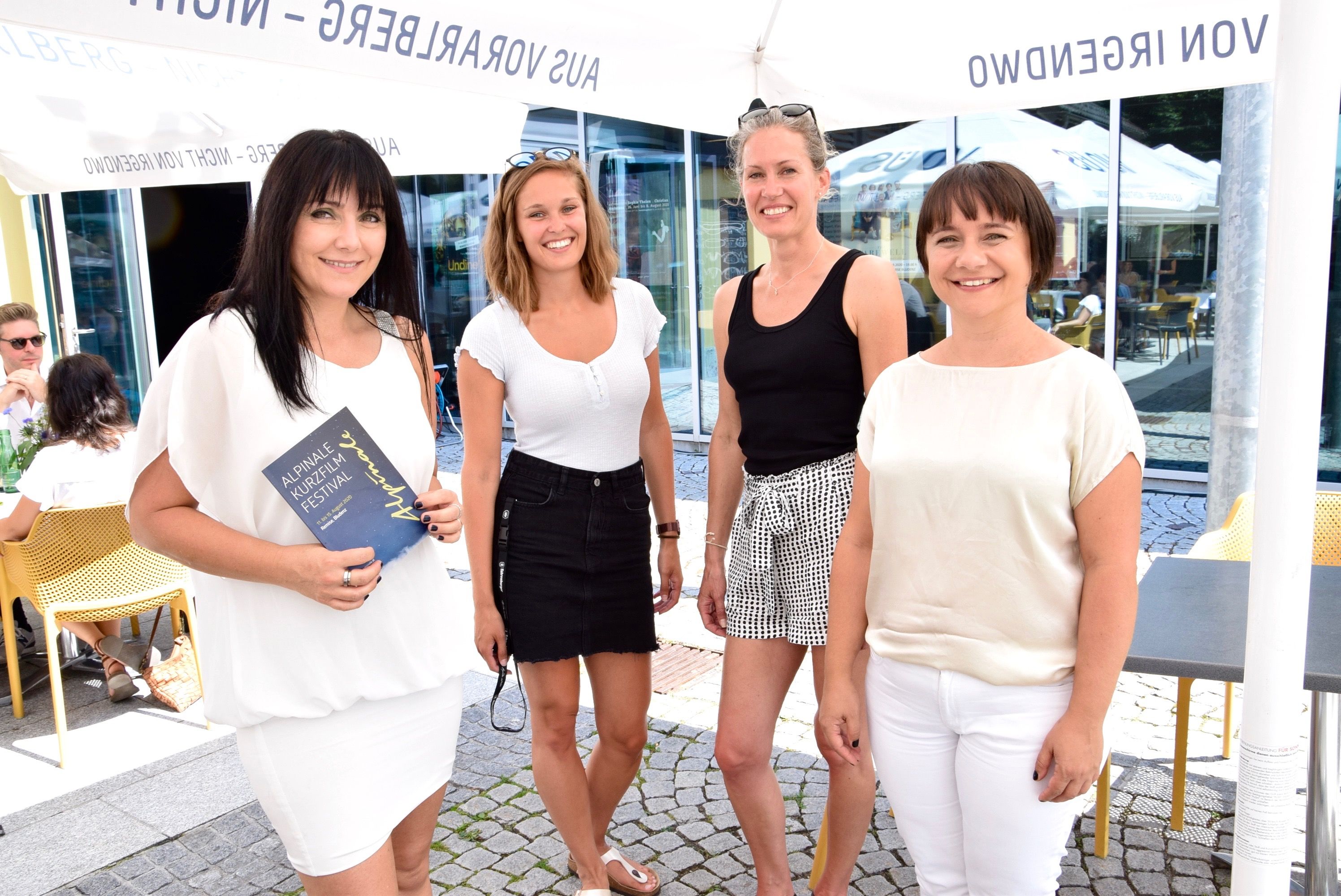 Die beiden Alpinale-Teammitglieder Rebekka Rinderer (links) und Intendantin Manuela Mylonas (rechts) mit Julia Gantner (Brauerei Fohrenburg) und deren Mutter Bianca