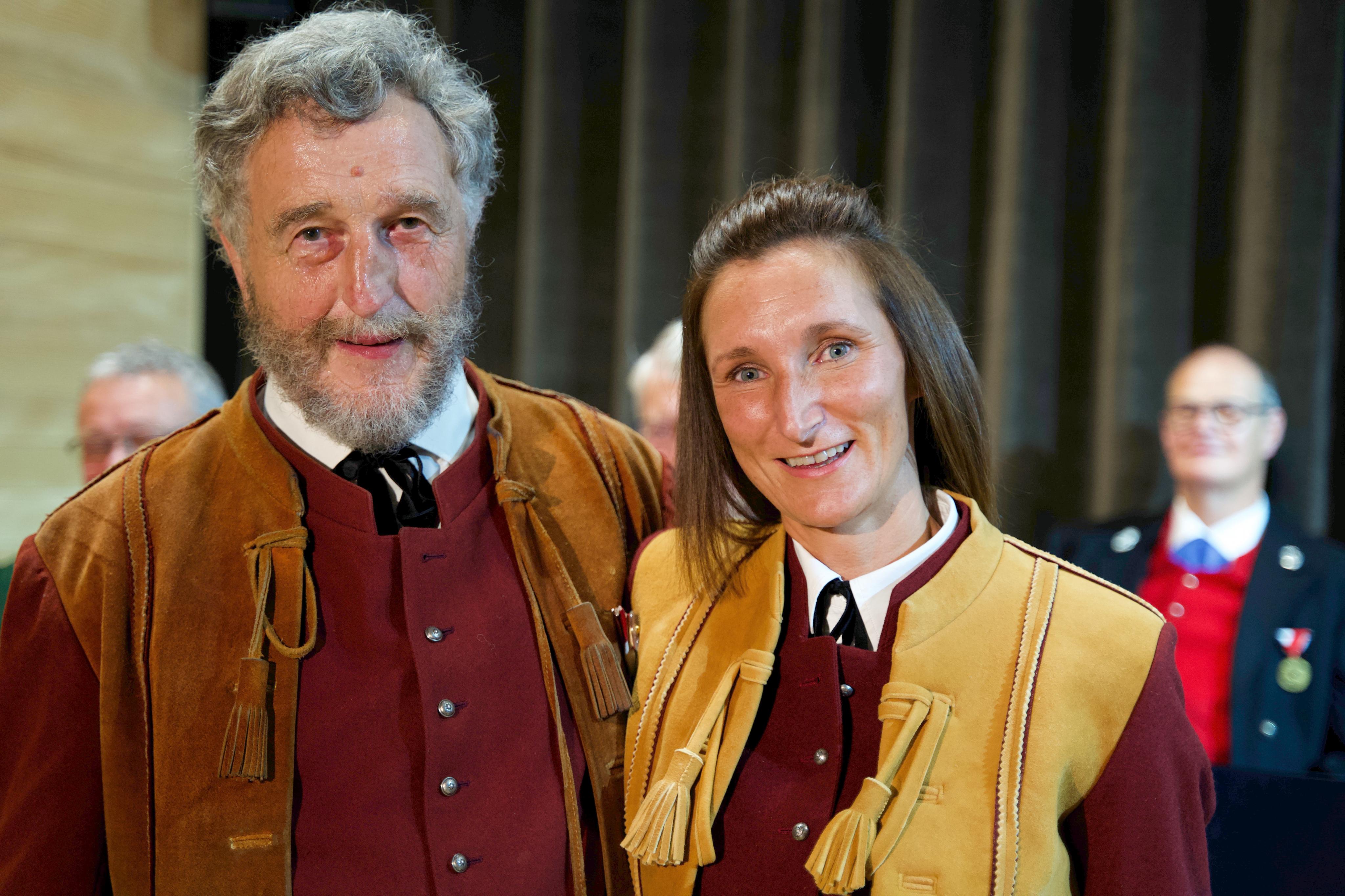 Jubilar Rudl Bär und Obfrau Anna Feurstein vom Musikverein Andelsbuch.