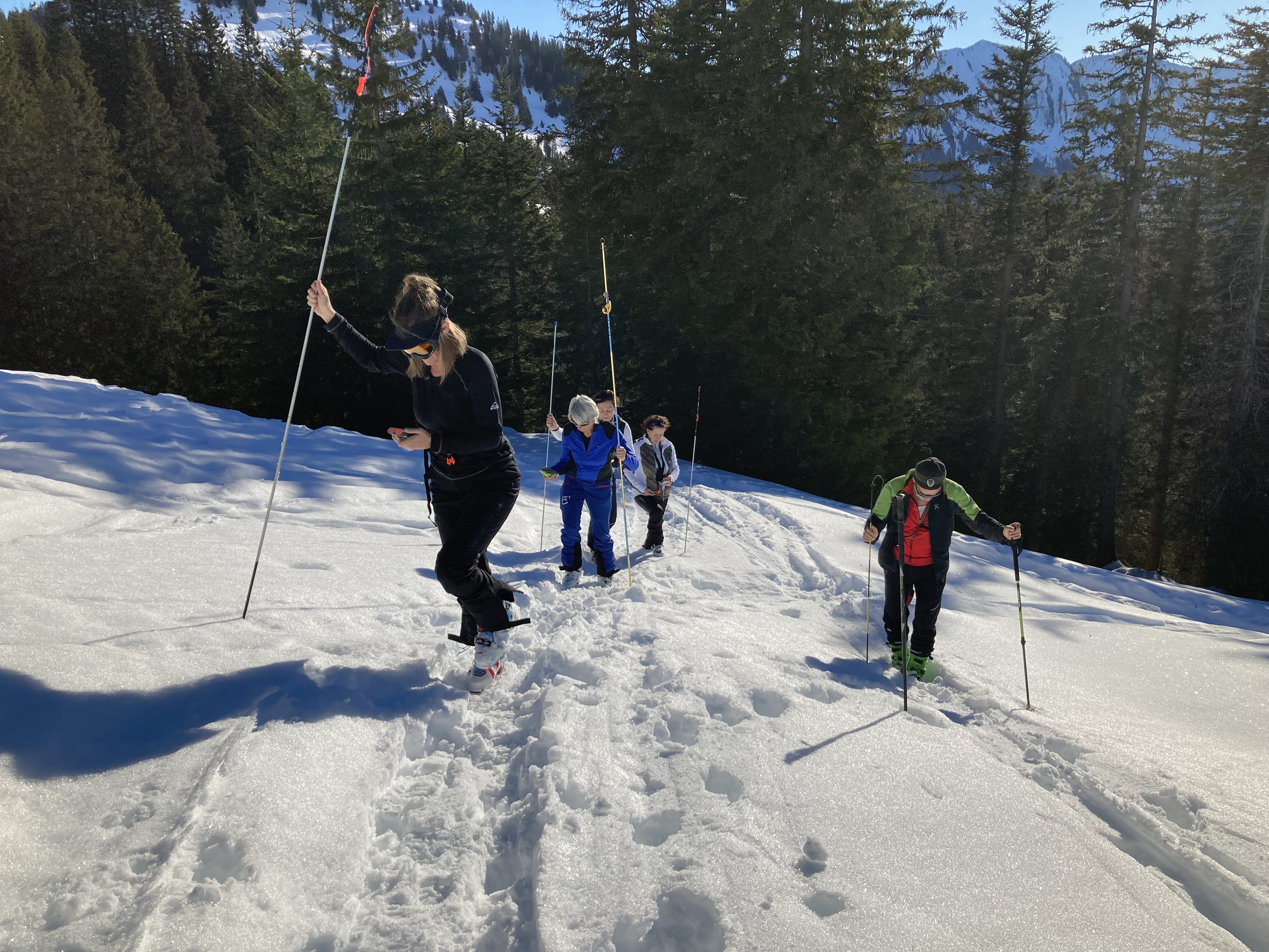 Skitourengruppe beim Üben