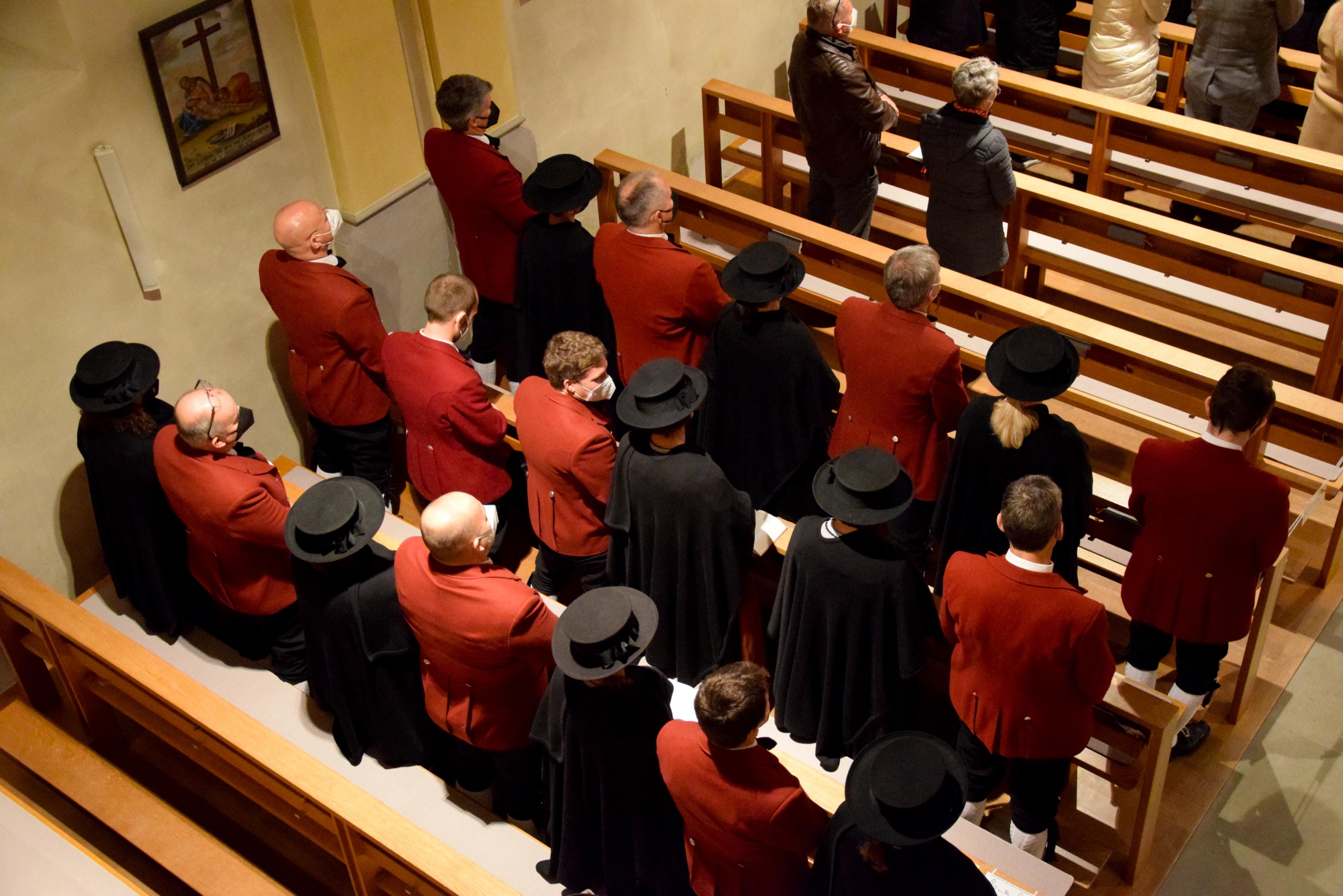 Mitglieder der Trachtengruppe Nüziders während des Gottesdienstes, von der Empore aus gesehen