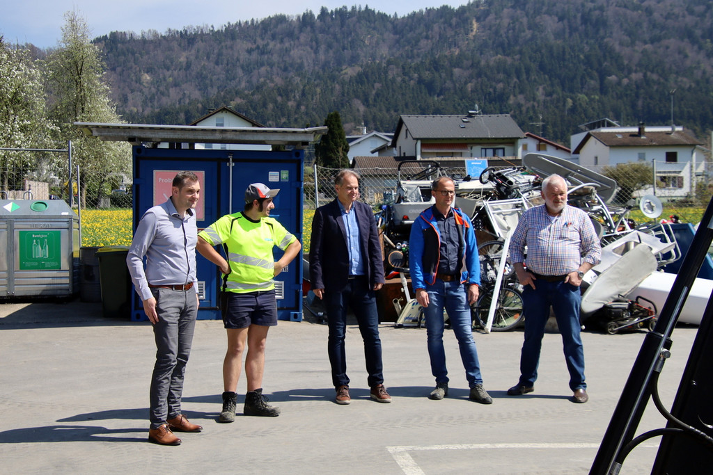 Bürgermeister Andreas Kresser, Adrian Gutierrez, Karl Wohllaib, Bauhofleiter Hubert Schreilechner und Steyr Verkaufsleiter Josef Knapp (vlnr)