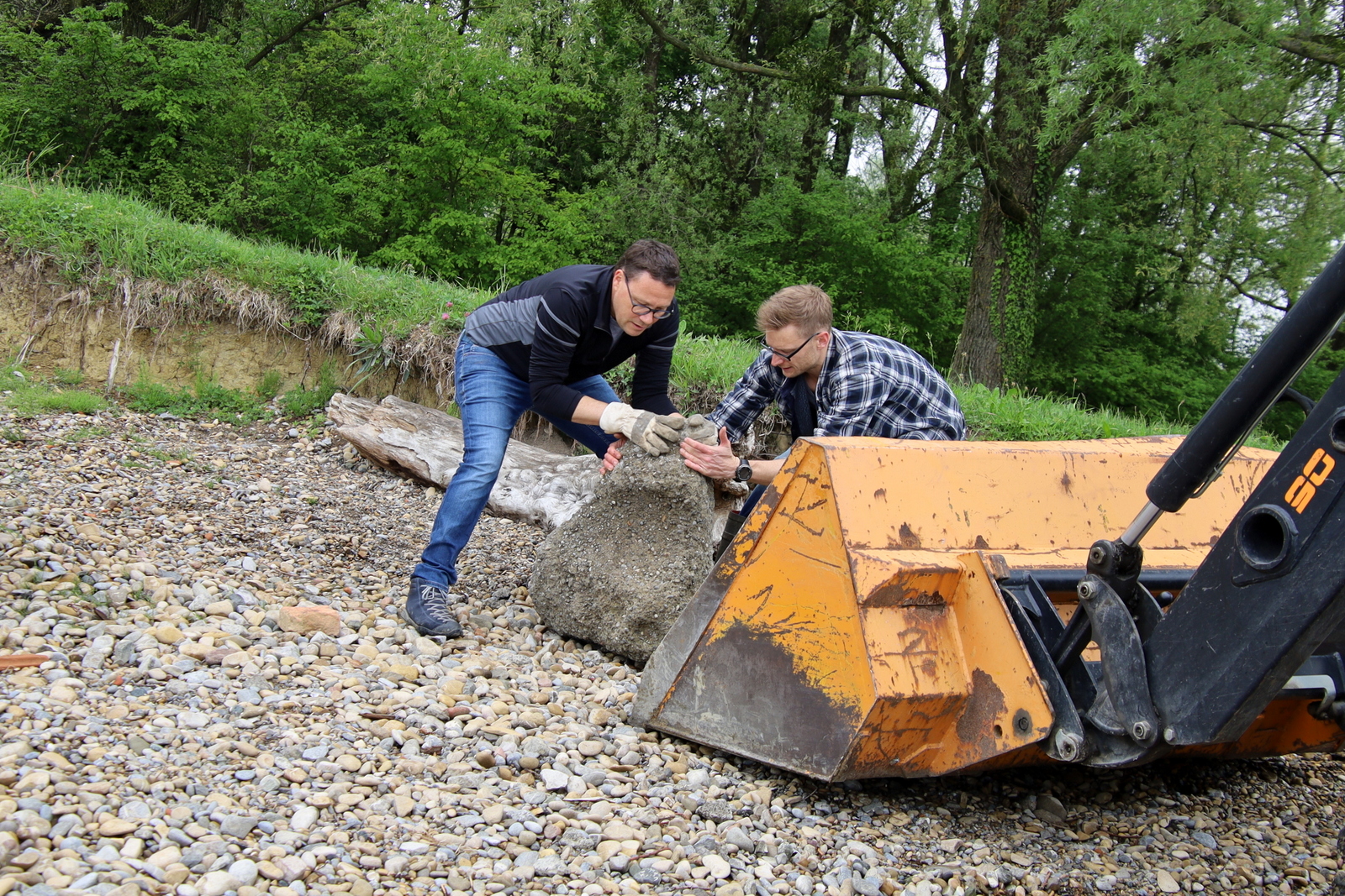 Vizebürgermeister Stefan Fischnaller und Hans Metzler von der Gemeindevertretung beim kräfteraubenden Einsatz