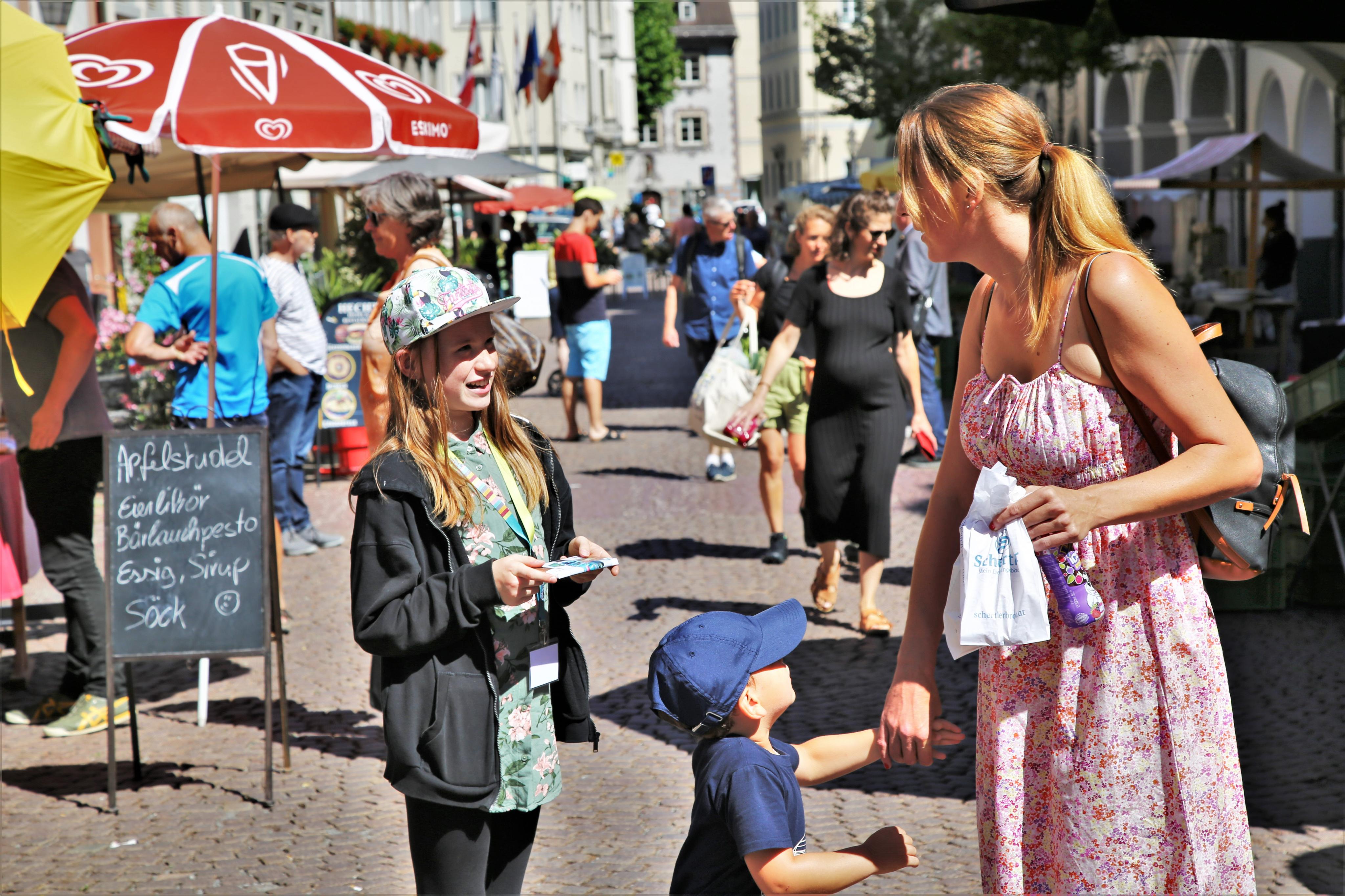 Kinderstadtvertreter auf dem Wochenmarkt (2022)