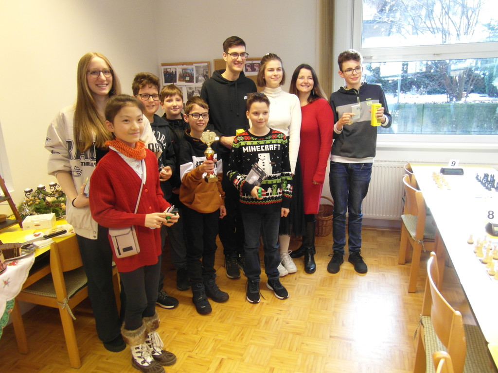Trainerin Julia Novkovic mit ihrer Jugendschachgruppe.