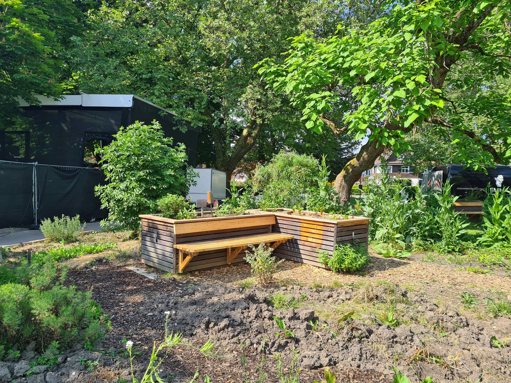 Die neuen Bänke erlauben es auch den Kindern besser an den Hochbeeten arbeiten zu können.