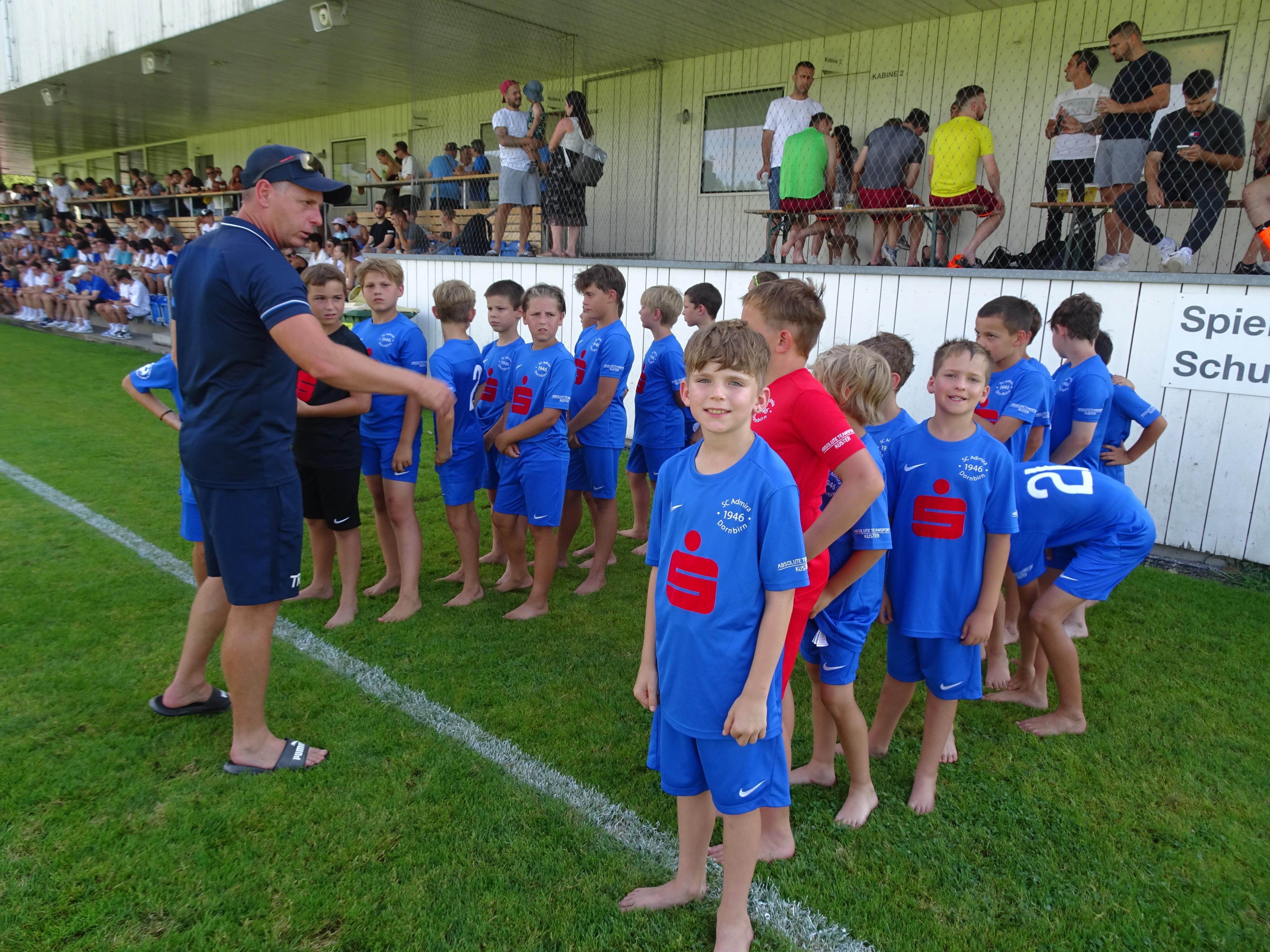 Letzte Anweisungen vom Trainer bevor es zum Einzug mit der Kampfmannschaft geht.